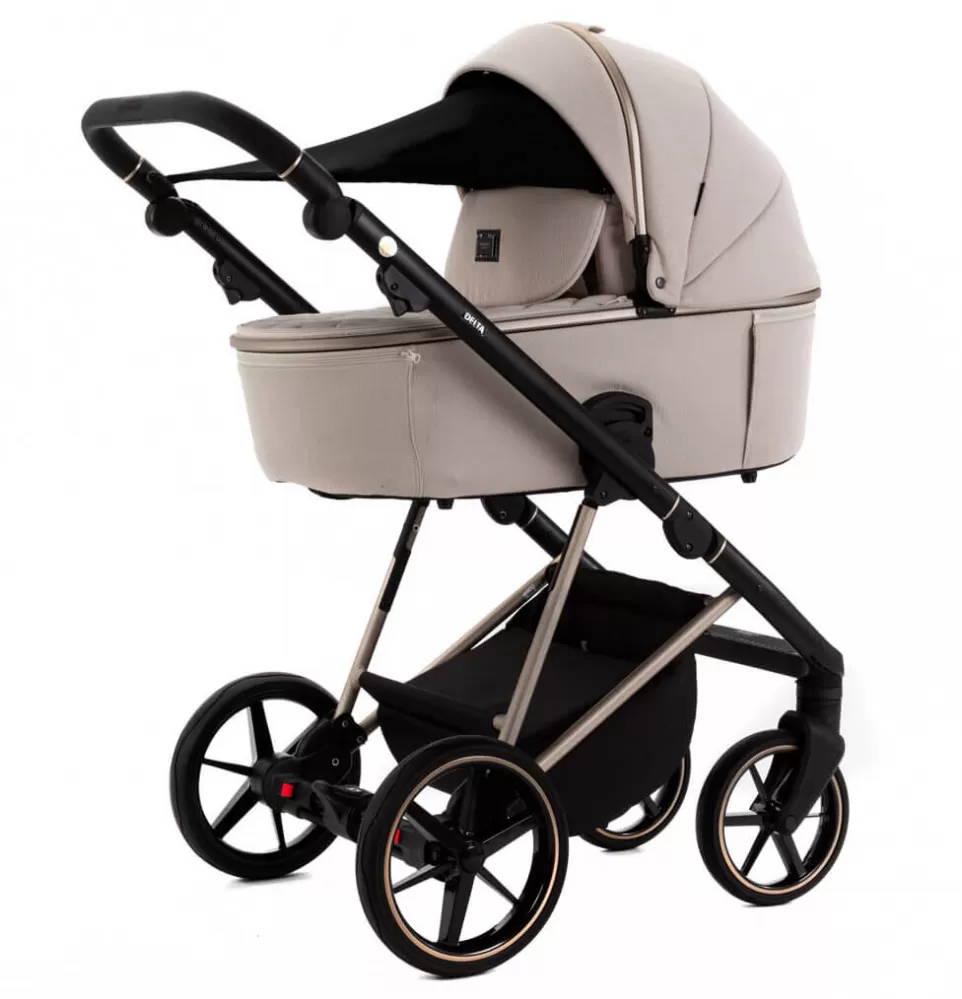 - Delta má praktický systém skládání korbičky, který usnadňuje cestování nebo uskladnění kočárku.