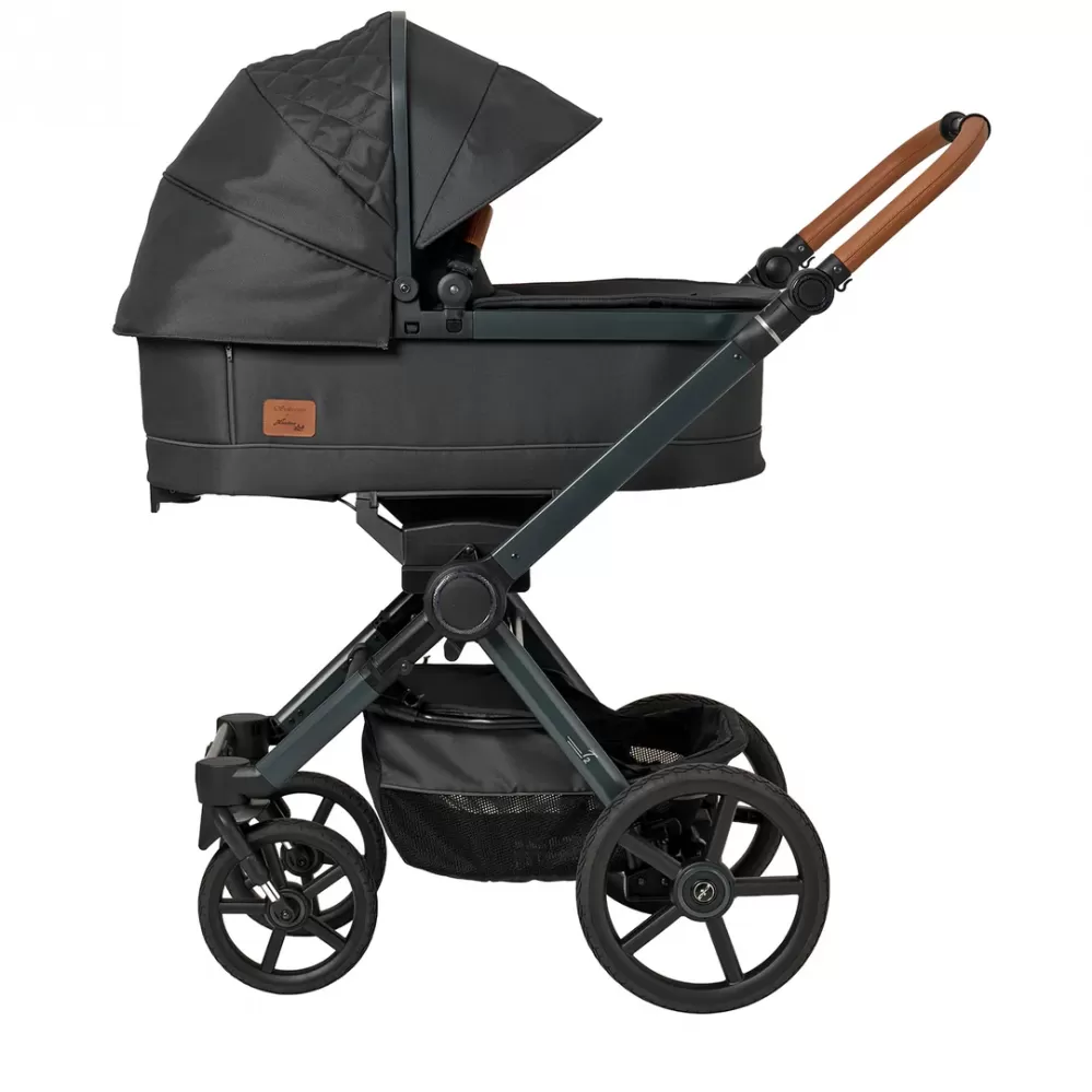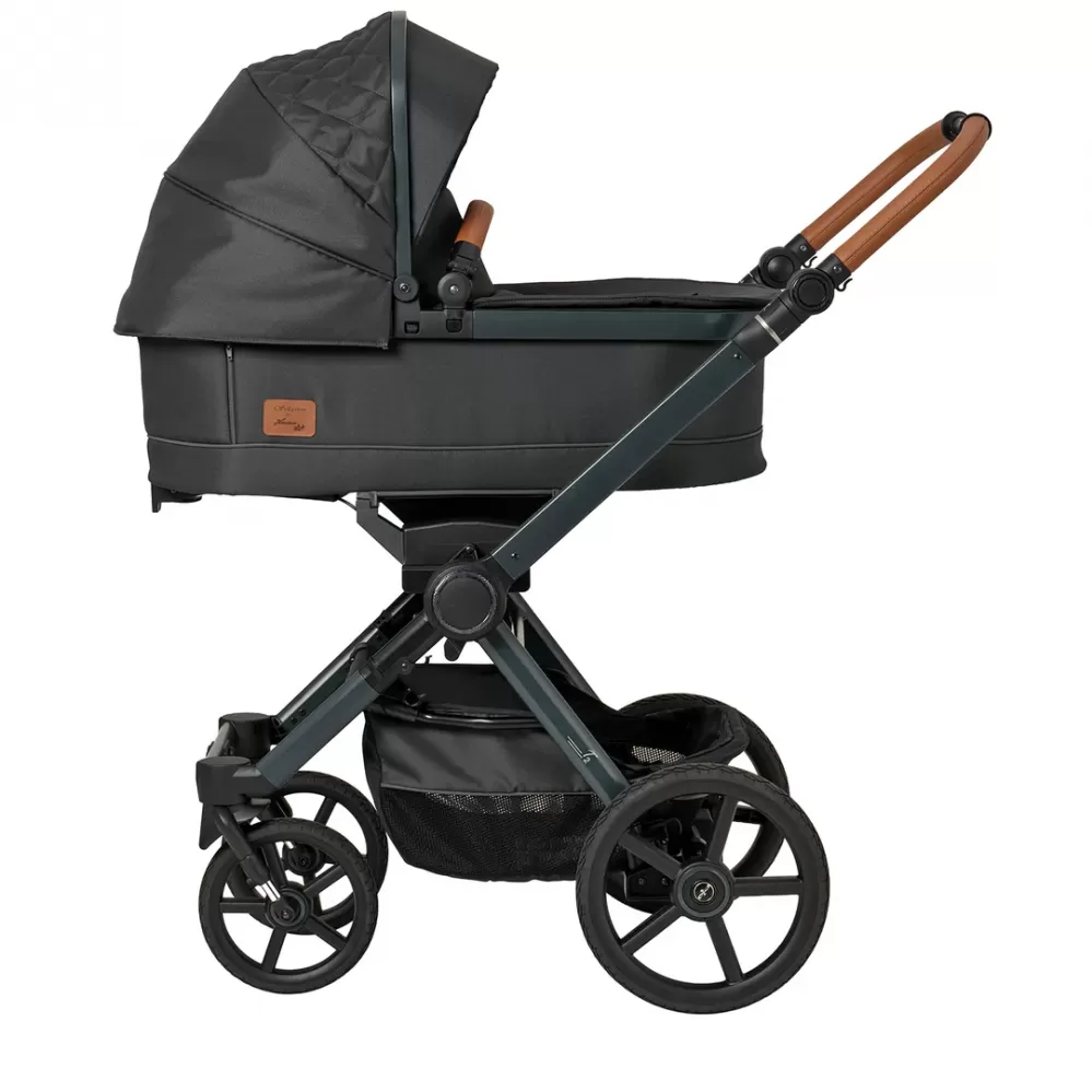 Design podvozku, látek i pásů je barevně sladěný pro elegantní a harmonický vzhled. Součástí je hluboká korba Babywanne Premium, díky které lze kočárek používat už od narození. Ta nabízí lehkou konstrukci, pohodlné polstrování, ventilační zónu a praktické skládání.