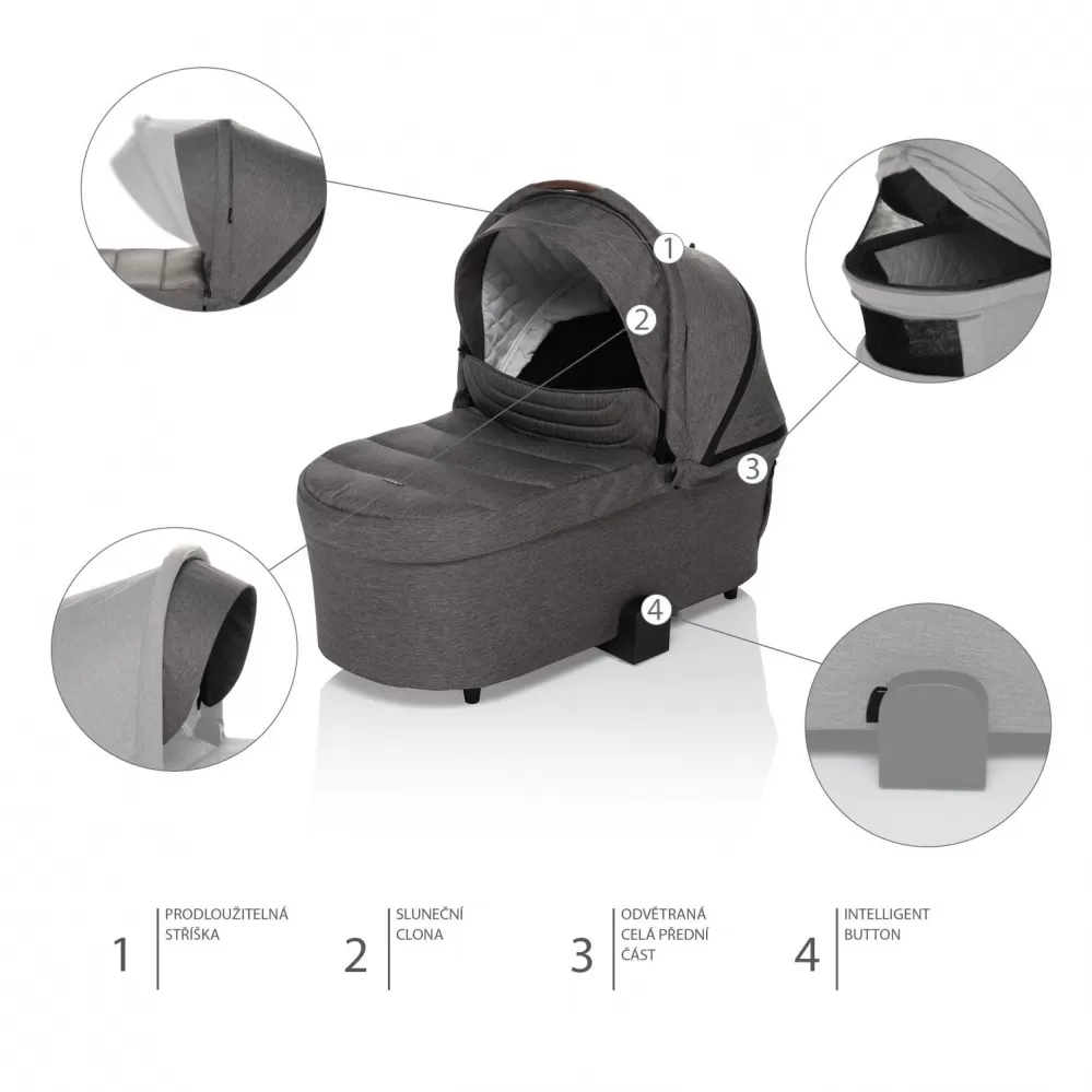 Prostorná a pohodlná korba Move XL nabízí dostatek místa i pro větší miminka nebo děti v zimním fusaku. Díky větracímu okénku na přední straně a odvětrané stříšce mohou malí objevitelé pozorovat svět i z polohy na bříšku.