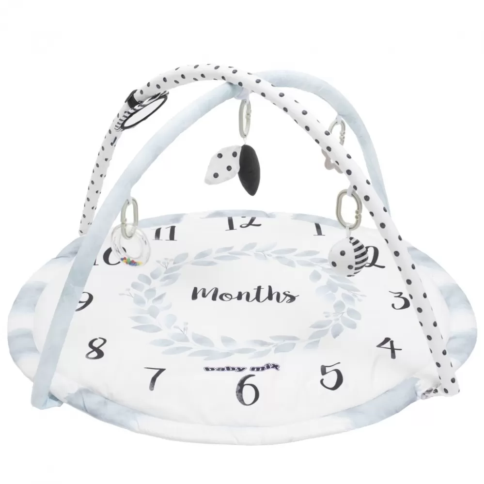 Krásná vzdělávací hrací deka s hrazdičkou rozvíjí dětskou představivost prostřednictvím poznávání barev a tvarů. Měkká podložka s důmyslným designem je lehká a snadno se přenáší. Závěsné hračky: chrastítko, pískátko. Čelenka je odnímatelná, stejně jako hračky. Příjemný a měkký materiál umožňuje pohodlné ležení na břiše nebo na zádech a umožňuje dítěti volný pohyb. podložka je potištěna měsíci, takže rodiče mohou zachytit tyto prchavé okamžiky, jak jejich dítě roste. Vzdělávací podložka poskytuje bezpečný a příjemný prostor a stane se oblíbeným místem pro hraní vašeho dítěte. Rozměry: průměr: cca 89 cm, výška cca 58 cm. Vhodné pro děti od 3 měsíců.