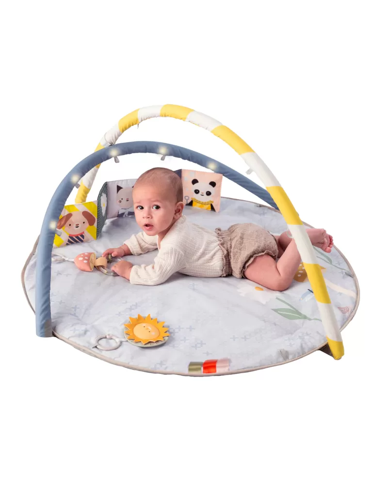 Interaktivní hrací deka Taf Toys s osvětlenou hrazdou, hudebním kolotočem a množstvím různorodých aktivit je dokonalým smyslovým hrištěm pro miminka. Podněcuje rozvoj jeho jednotlivých smyslů, motoriky a zvídavosti již od narození.