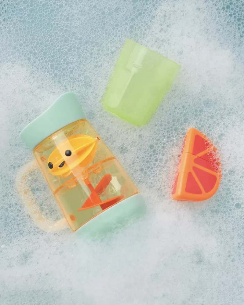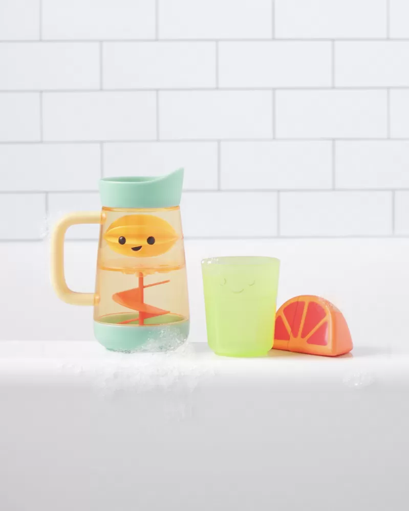 Objevte zábavu v koupelně se sadou Tub to Table Café - Zábavná limonáda, která přinese vašim malým šéfkuchařem nekonečné hodiny kreativní zábavy! Tento roztomilý set jim umožní míchat a servírovat osvěžující limonádu, přičemž se jim při hře rozvíjejí motorické dovednosti a koordinace ruka-oko. Balení obsahuje: džbán, sklenici a citrusovou stříkačku. Děti mohou nalít vodu do džbánu, spustit mixér s citronem, pozorovat točení pomerančové slupky a poslouchat chrastící kuličky uvnitř. Džbán má jednoduché otáčecí tlačítko na spodní straně, které umožňuje otevírání a zavírání pro uvolnění vody, takže děti mohou kontrolovat proud vody. Průsvitná konstrukce džbánu a sklenice umožňuje dětem pozorovat vodu a snadno ji nabírat, což přispívá k rozvoji jejich dovedností. Citrusová stříkačka je vyrobena ze dvou částí pro snadné čištění a je ideální pro stříkání a hraní. Tento set podporuje hru na předstírání, pomáhá rozvíjet motorické schopnosti a koordinaci ruka-oko, čímž zaručuje, že každé koupání bude plné zábavy a učení. Vhodné pro děti od 12 měsíců. Sada je součástí oblíbené kolekce Tub-to-Table Café, která přináší ještě víc hravosti a vzdělávání do vaší koupelny. Vytvořte si s dětmi limonádu a užívejte si koupel jako nikdy předtím!