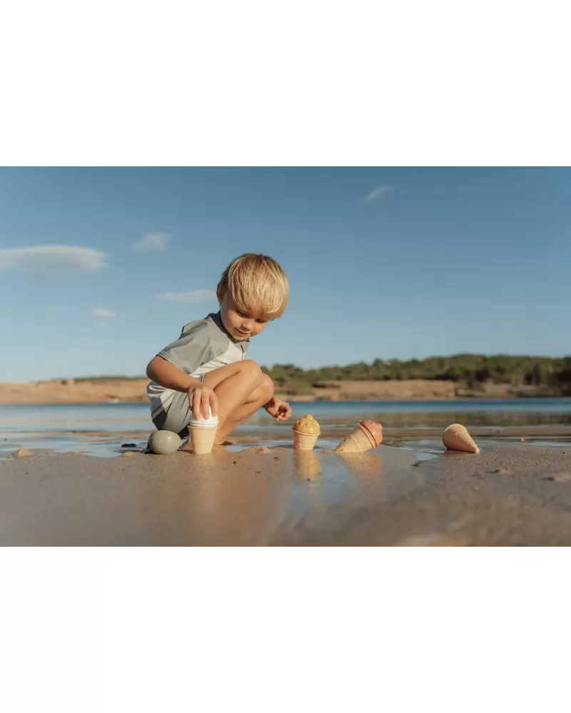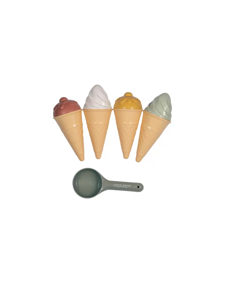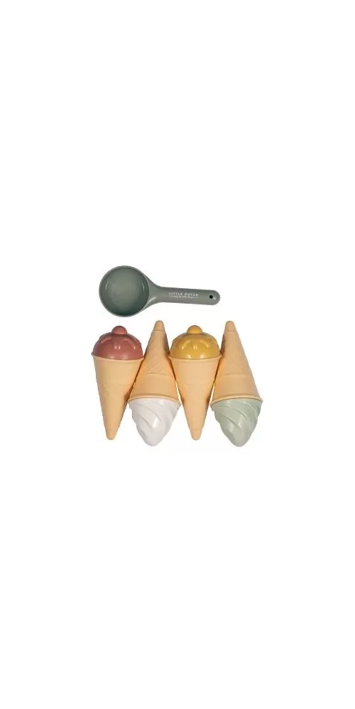 Zmrzlina patří k létu a s touto roztomilou sadou si ji vaše děti vyrobí i z písku. Sadu čtyři kornouty, naběračka na zmrzlinu a čtyři formičky ve tvaru zmrzliny.
