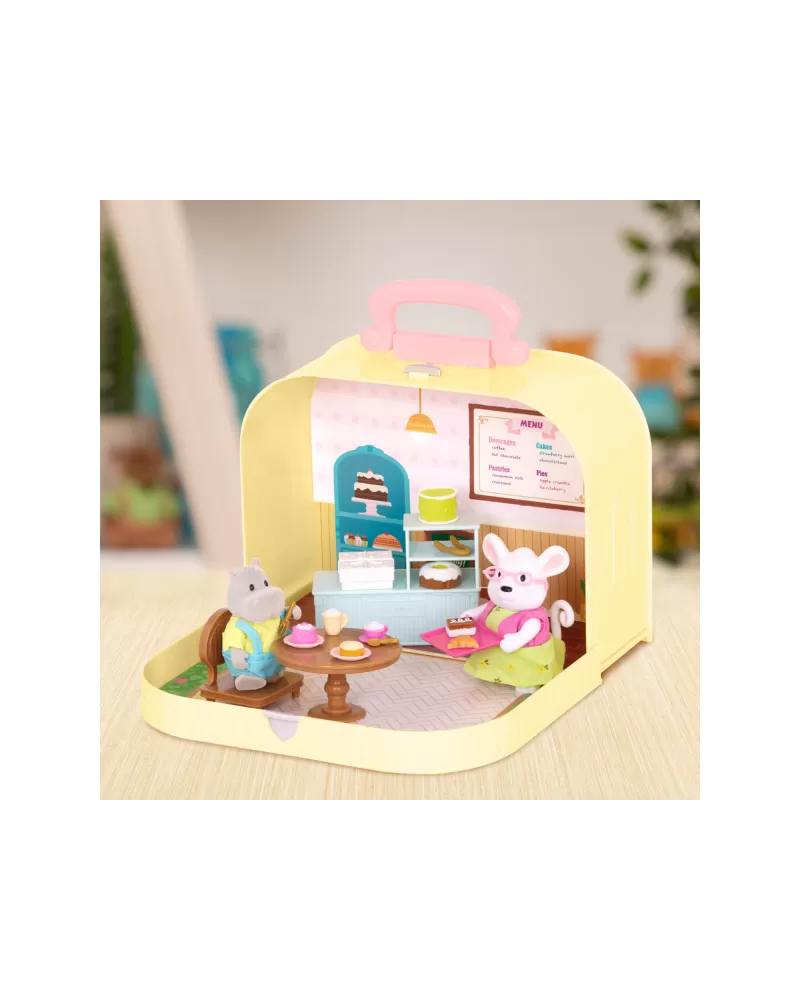 Cestovní sada hraček Li'l Woodzeeze v praktickém kufříku umožní vašemu dítěti hrát si se kdekoli na dovolené, výletech či během víkendu u prarodičů. Kufřík se po otevření promění v bohatě vybavenou cukrárnu s nábytkem a doplňky.