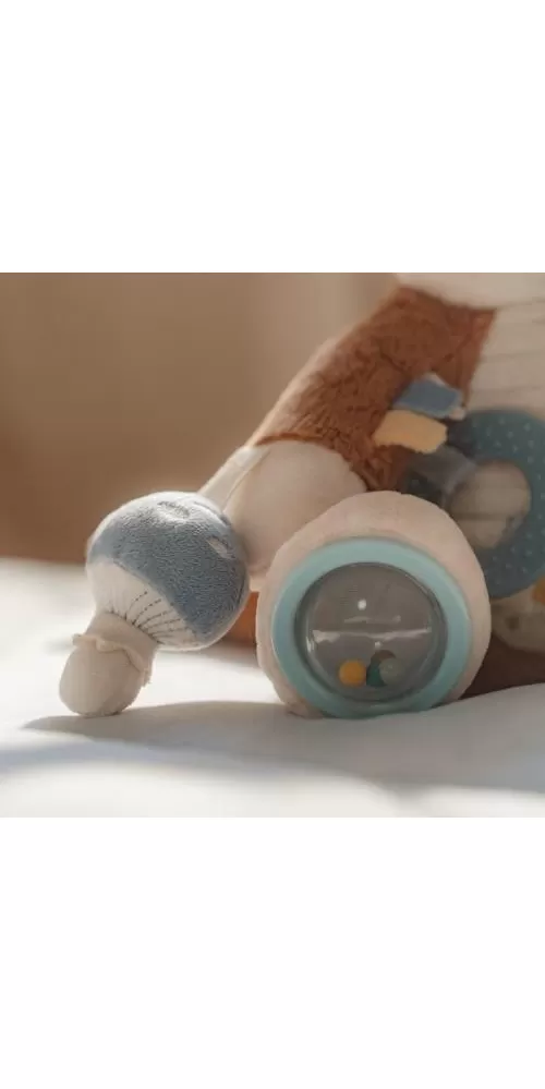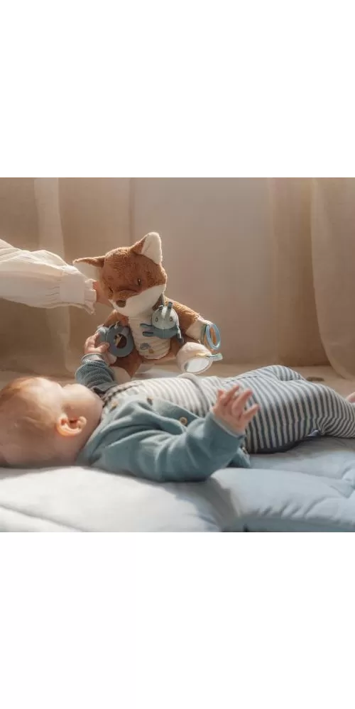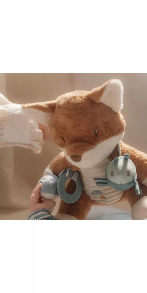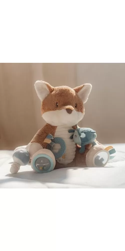 Plyšová hračka v podobě roztomilé lišky láká ke hraní a zkoumání. Liška je je vyrobena z velmi jemného a příjemného materiálu, při pohybu chrastí a nabízí různorodé aktivity ke zkoumání. Hračka dítě zabaví a může sloužit i jako kamarád do postýlky pro klidné usínání.