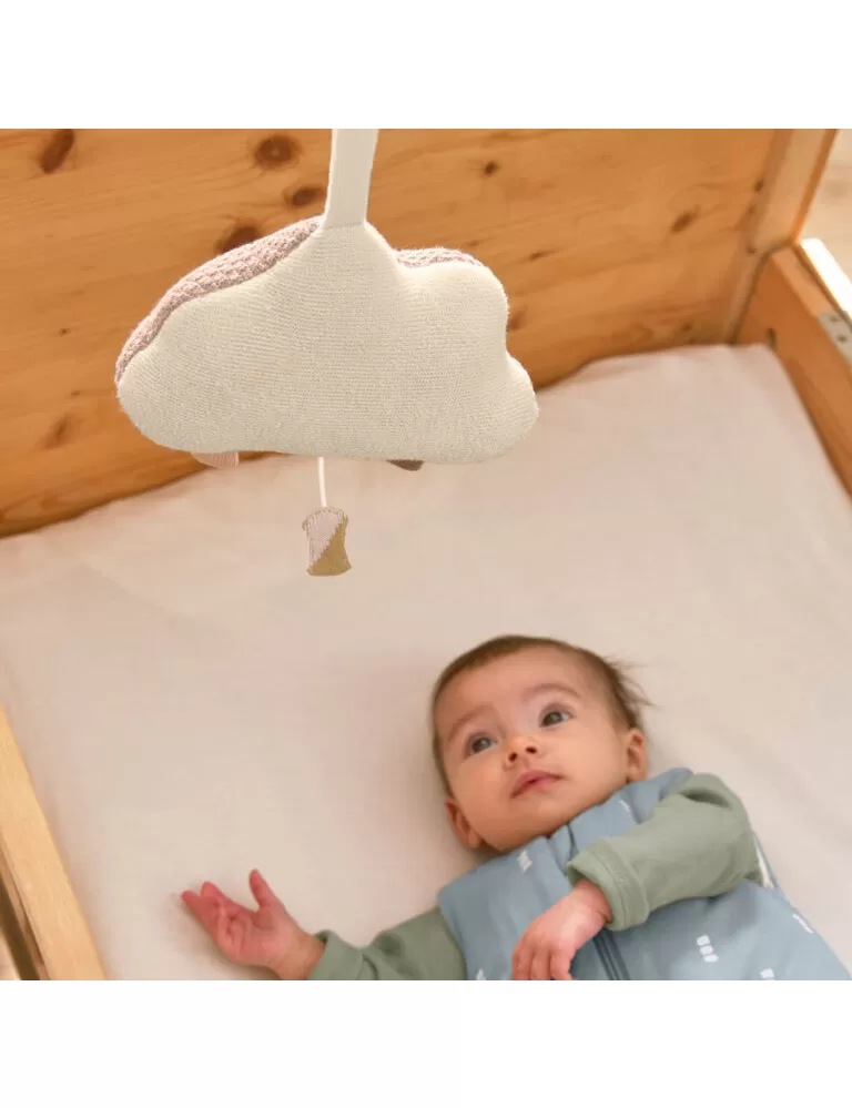 Je vyrobena z pleteného materiálu z organické bavlny. Po vytažení šňůrky hraje jemnou Brahmsovu melodii Lullaby. Lze zavěsit nad postýlku.