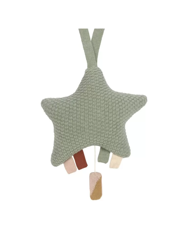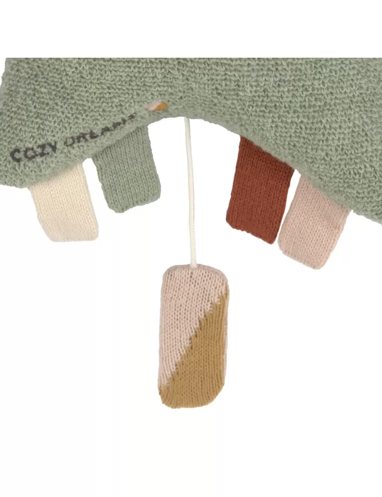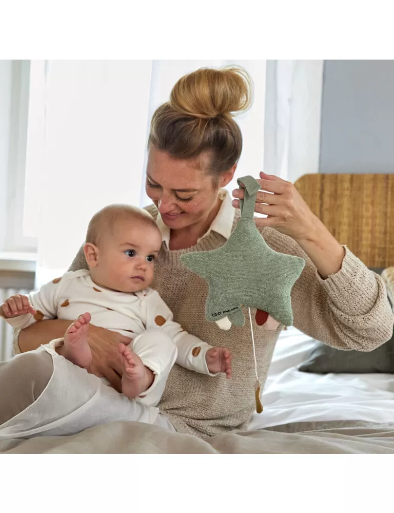 Je vyrobena z pleteného materiálu z organické bavlny. Po vytažení šňůrky hraje jemnou Brahmsovu melodii Lullaby. Lze zavěsit nad postýlku.