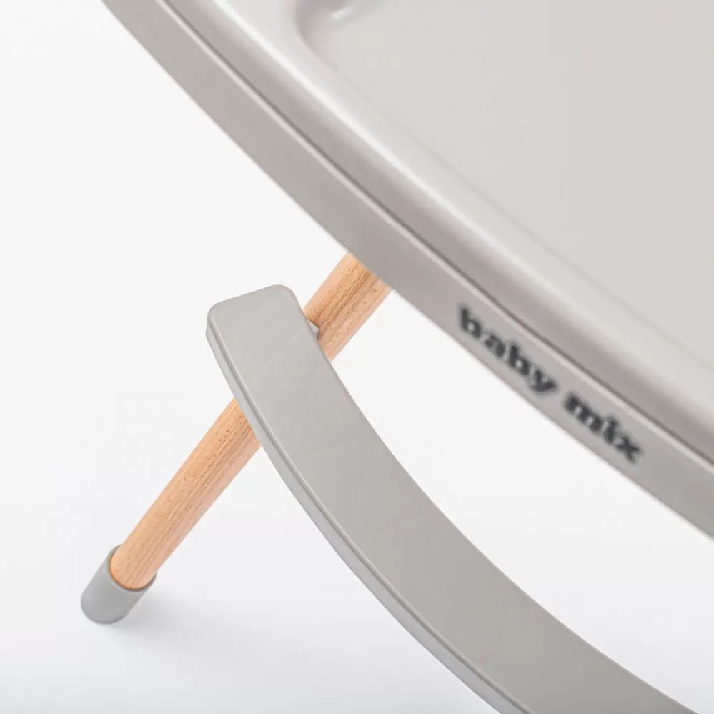 Jídelní židlička Baby Mix má všechny funkce, které usnadňují každodenní krmení: nastavitelný dvojitý tácek, 5bodové pásy, odnímatelné čalounění z eko kůže, opěrka nohou, látkový koš, protiskluzové nožičky. Židli lze snadno přeměnit na nízkou židli odstraněním spodní části nohou.Jídelní židlička Baby Mix je vhodná pro děti ve věku 6-36 měsíců.