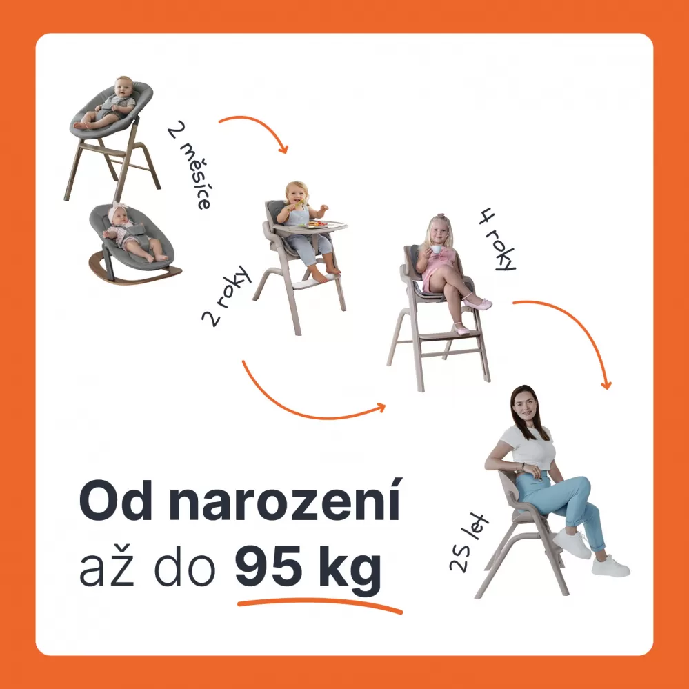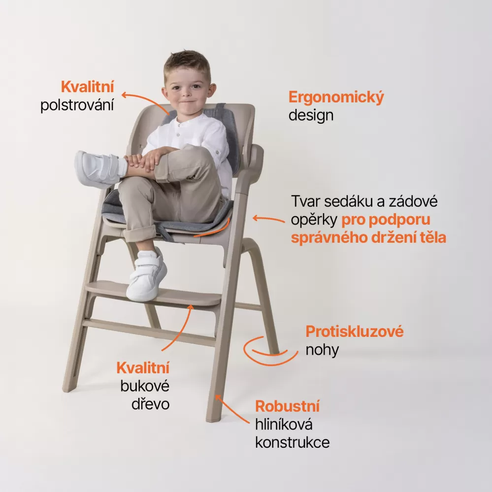 Elegantní jídelní židlička Zopa Inspira poroste s vaším dítětem od prvního příkrmu až po školní léta. Stylový design, důmyslné bezpečnostní prvky a vysoká nosnost z ní dělají spolehlivého parťáka pro každý rodinný stůl.