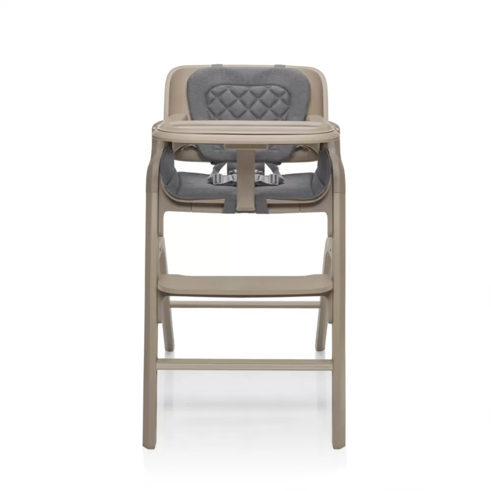 Pětibodový bezpečnostní pás a stabilní konstrukce zajistí maximální ochranu při každém krmení. Hrazda mezi nožičkami zamezí sklouznutí a přidržuje odnímatelný pultík s praktickým táckem.