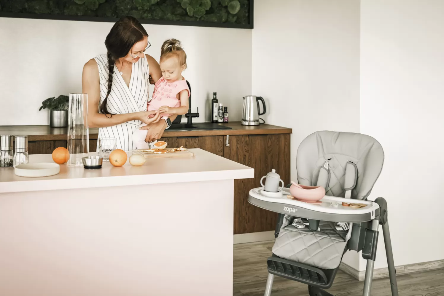 Jídelní židličku Monti 2 lze snadno složit a díky jejím kompaktním rozměrům ve složeném stavu nebude zabírat mnoho místa. Navíc je vybavena kolečky s brzdou pro snadnou manipulaci a přemísťování. Pro snadnou manipulaci lze pultík zavěsit na židličku, a tak nebude nikde zavazet, když zrovna nebude používán.