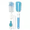 Sada kartáčků na láhve a dudlíky pomáhá při důkladném vyčištění. Souprava je vybavena dvěma vyměnitelnými hroty na mytí lahví, jedna je zakončena kartáčem s měkkými štětinami a druhá je vybavena elastickou houbou, hroty lze volně měnit. Souprava také obsahuje houbu na čištění dudlíků. Kartáč má závěsný otvor na sušení před dalším použitím. Kartáče sahají na těžko přístupná místa a pohodlné držadla poskytují stabilní přilnavost. Jsou vyrobeny z odolných a bezpečných materiálů, které neobsahují bisfenol A.