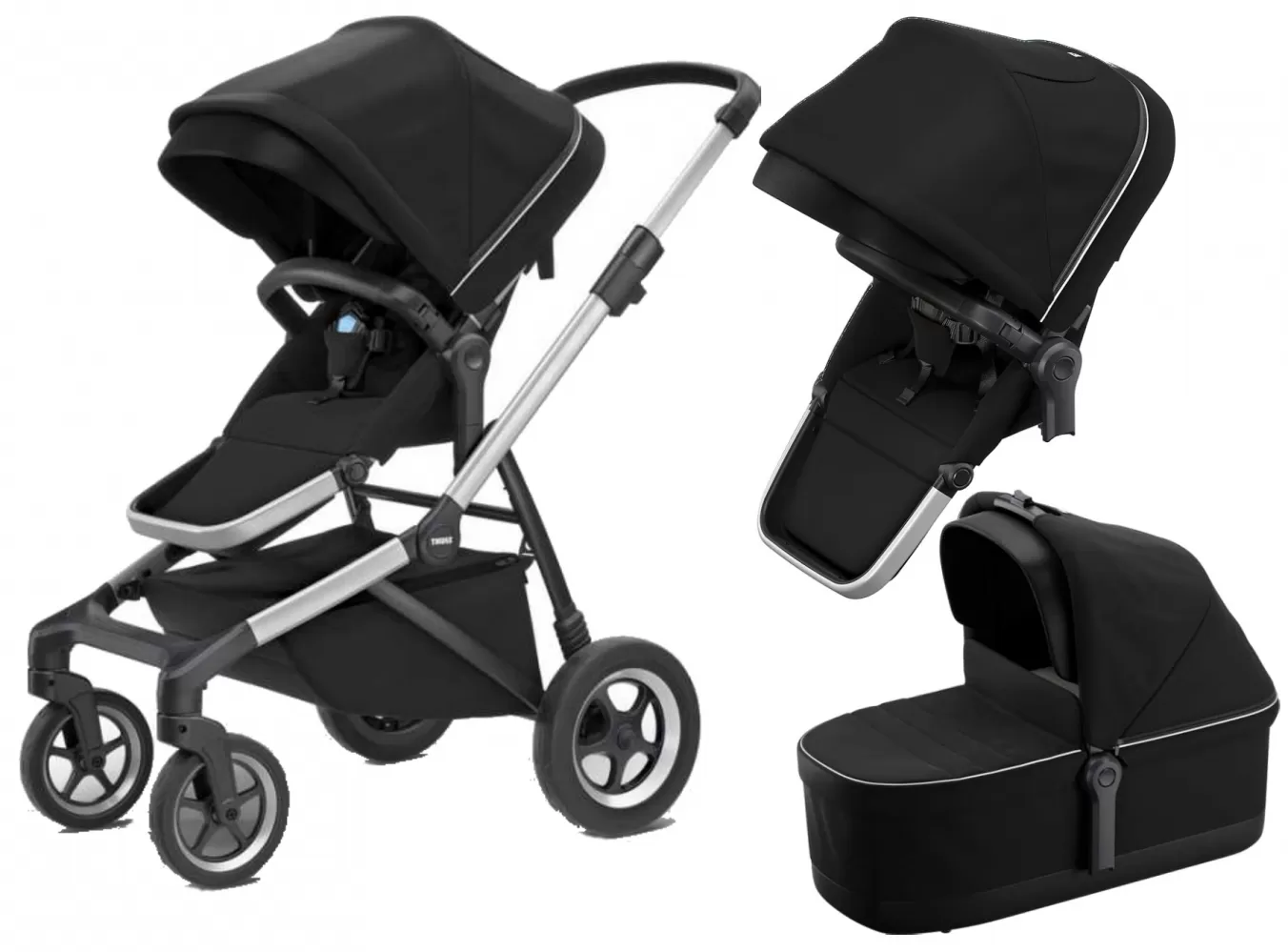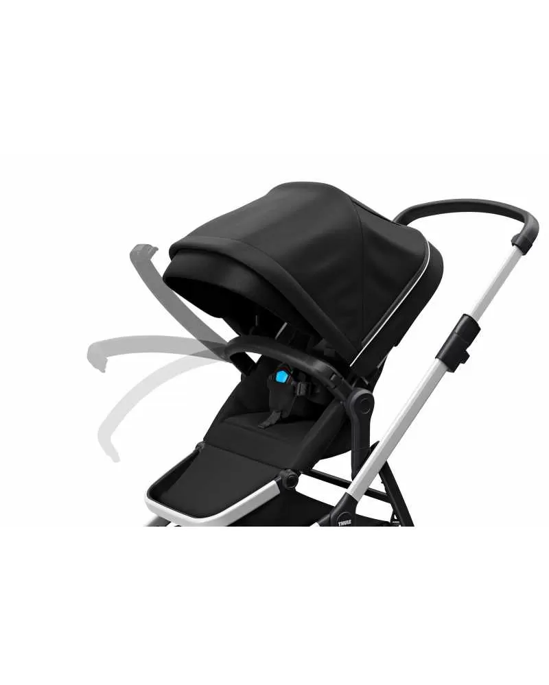 Set obsahuje: Sportovní kočárek Thule s korbičkou + sportovní nástavbu Thule Sleek Sibling Seat