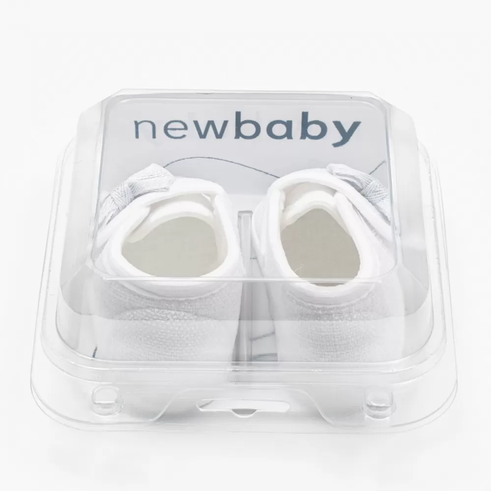 Kojenecké capáčky New Baby pro miminka. Krásné botičky s moderním vzhledem na suchý zip. Capáčky přiléhají k nožičce a mají široký vnitřek, což umožňuje volný pohyb prstů a svalů. Výrobek není určen k chůzi. Jsou velmi lehké s tenkou syntetickou podrážkou. Složení: tkanina typu len:100% polyester. Podrážka: syntetický materiál PVC bez BPA. Délka vnitřní stélky 10 cm. Určeno pro děti 0-3 měsíců. Dodáváné v praktické krabičce. Upozornění: pod textilní vložkou se někdy nachází papírová vložka, která drží tvar capáčky. Před prvním použitím odstraňte tuto papírovou vložku.