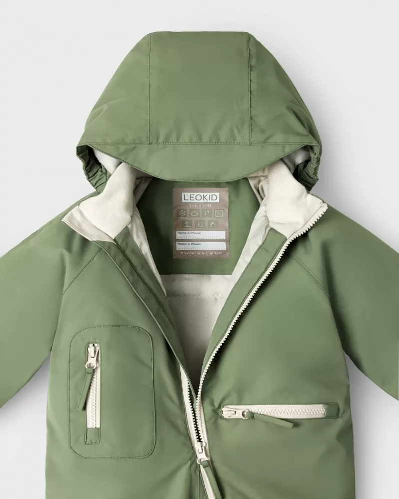 • doplňky: plastový zip s kovovým jezdcem, silikonová nášivka s logem Leokid, elastické polyesterové šle, a silikonové nánožníky