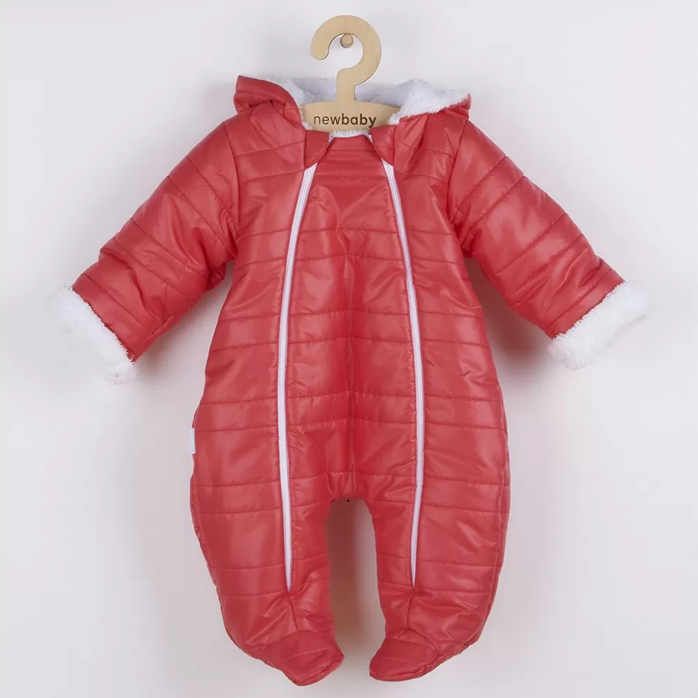 New Baby Zimní kojenecká kombinéza s kapucí a oušky Pumi red raspberry