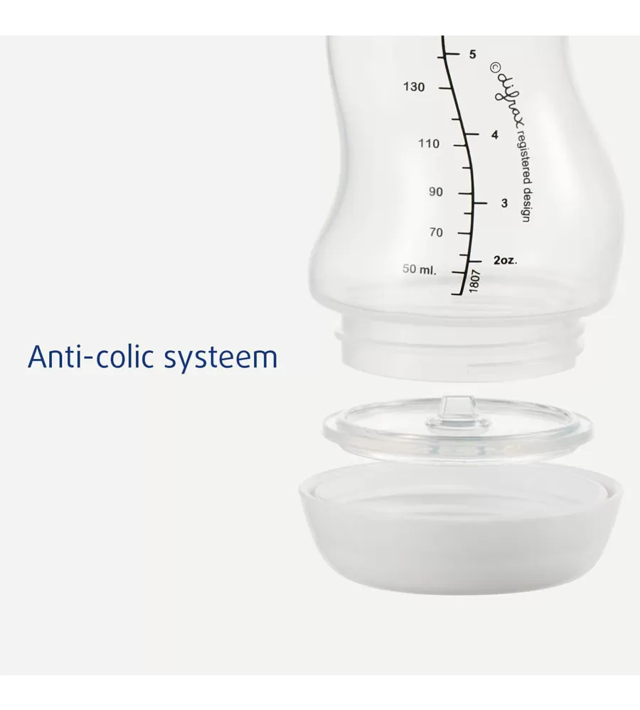 Ušetřete a pořiďte si zvýhodněnou sadu dvou kojeneckých S-lahviček Difrax 250 ml, které jsou již po mnoho let první volbou miminek, maminek i tatínků. Esíčkovitý tvar a antikolikový ventil ve dně láhvičky společně zaručují miminku bezpečný příjem potravy bez přimíchaného vzduchu. Můžete ji používat hned od narození miminka a osvědčuje se i v kombinaci s kojením. Později je také vhodná pro podávání kašiček a hustší stravy. Zamezuje tak žaludečním křečem, říhání a zvracení. S-lahvička Difrax je první svého druhu, která miminku i rodičům zajišťuje krmení v přirozené poloze, stejné jako při kojení. V sadě jsou dvě láhvičky, každá v jiné barvě. Před každým použití zkontrolujte, že jsou průduchy v antikolikovém ventilu čisté, a tedy průchodné.