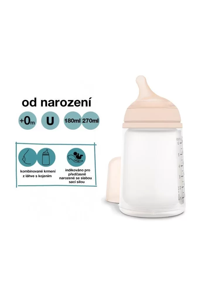 Hrdlo kojenecké láhve je kompatibilní s odsávačkami mateřského mléka Suavinex a je proto možné odsávat mléko přímo do ní.