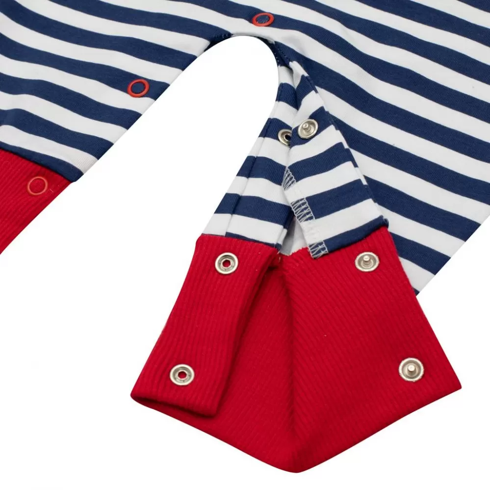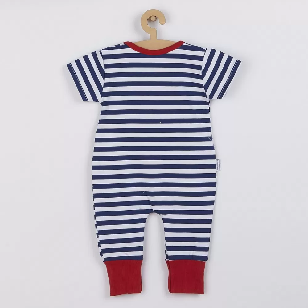 Letní bavlněný overálek české značky New Baby Marine pro miminka. Overálek je celopotištěný moderními pruhy s krásnou nášivkou lodičky. Nášivka je… Celý popis