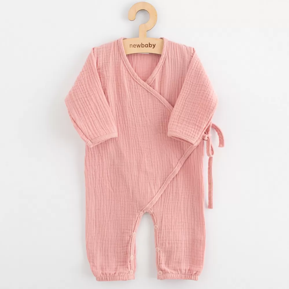 Stylový mušelínový overal s dlouhým rukávem české značky New Baby. Zavinovací overálek má praktické zavazování na boku na tkaničky, z vnitřní strany na cvoček a mezi nožičkama na cvočky což usnadní oblékání a přebalování. Na nohavičkách jsou jemné gumičky, které ale netlačí na nožičkách. Super stylový overálek rozzáří každé miminko.
