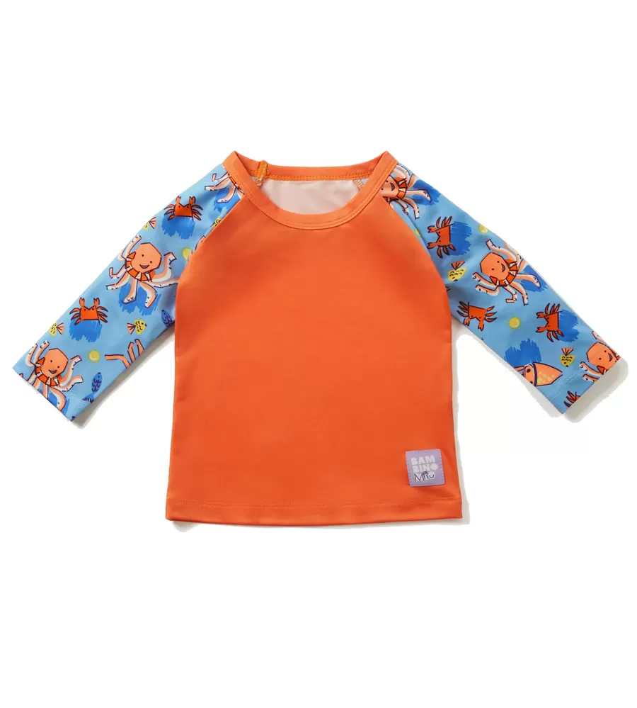Perfektní UV40+ ochrana pro malé námořníky a objevitele! Chraňte pokožku dítěte s našim dětským tričkem do vody s UV filtrem. Tričko Wave vhodně doplňuje plavky Bambino Mio, které najdete v souvisejícím zboží.