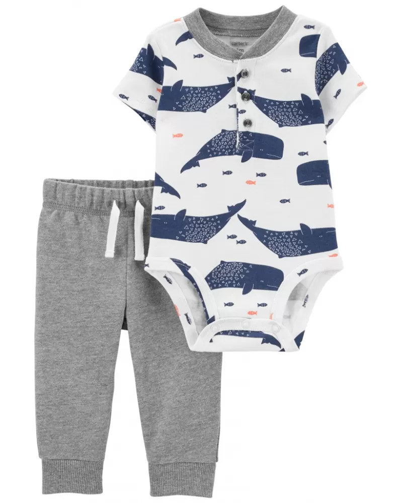 CARTER'S Set 2dílný tepláky, body kr. rukáv Grey Whale chlapec 3m
