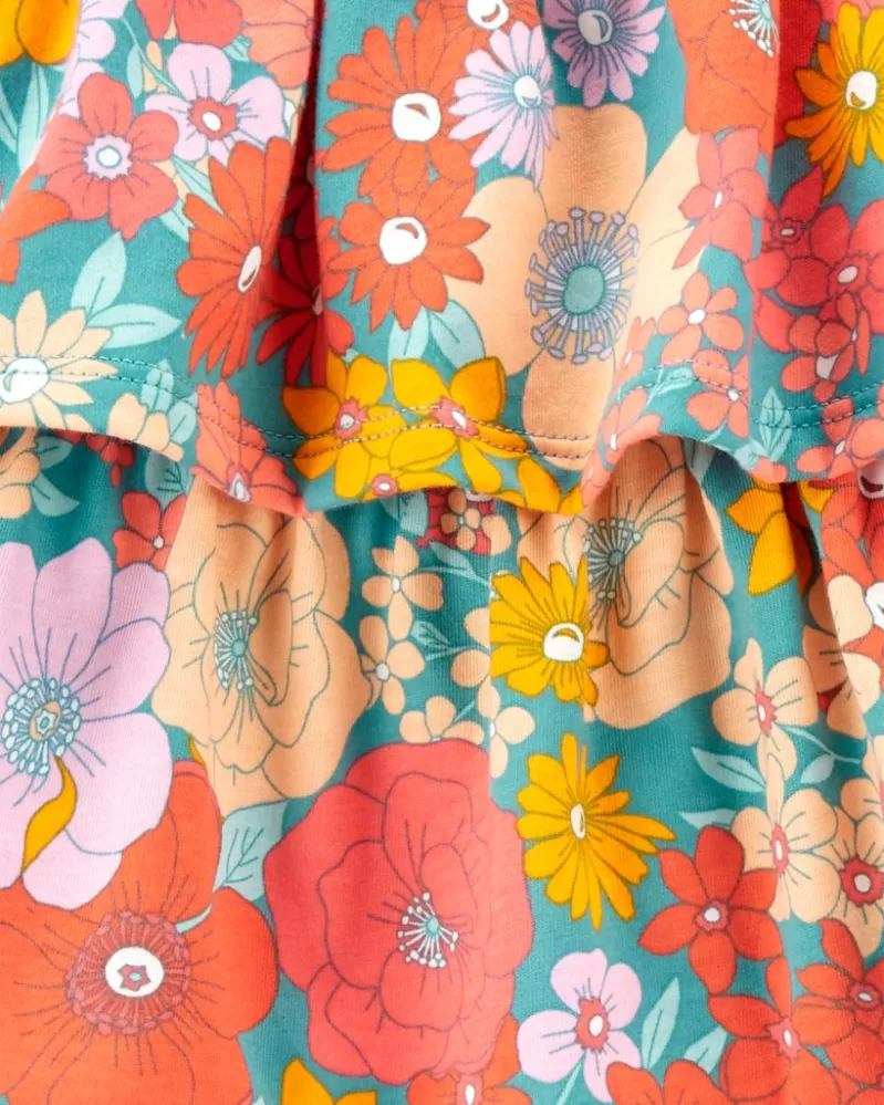 CARTER'S Set 3dílný triko na ramínka, body na ramínka, kraťasy Orange Flowers holka 9m