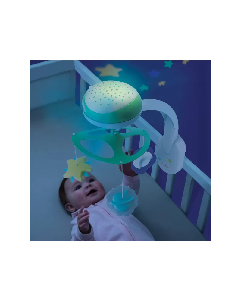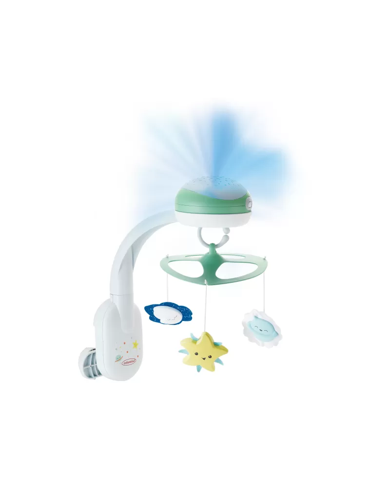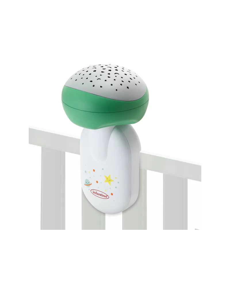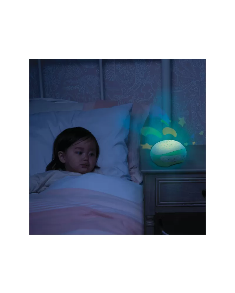 Světelný projektor promítá na stěnu či strop hvězdičky a jemně tak osvítí dětský pokoj. Spolu s uklidňující melodií pomůže vašemu dítěti v klidu usínat. Nabízí na výběr z osmi uklidňujících melodií a zvuků přírody. Melodie a přírodní zvuky kolotoč po zapnutí přehrává 20 minut, zvukový senzor přehrávání spustí znovu, pokud dítě během dvou hodin po zapnutí začne plakat.