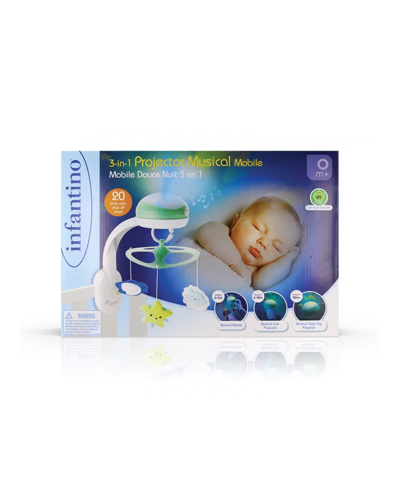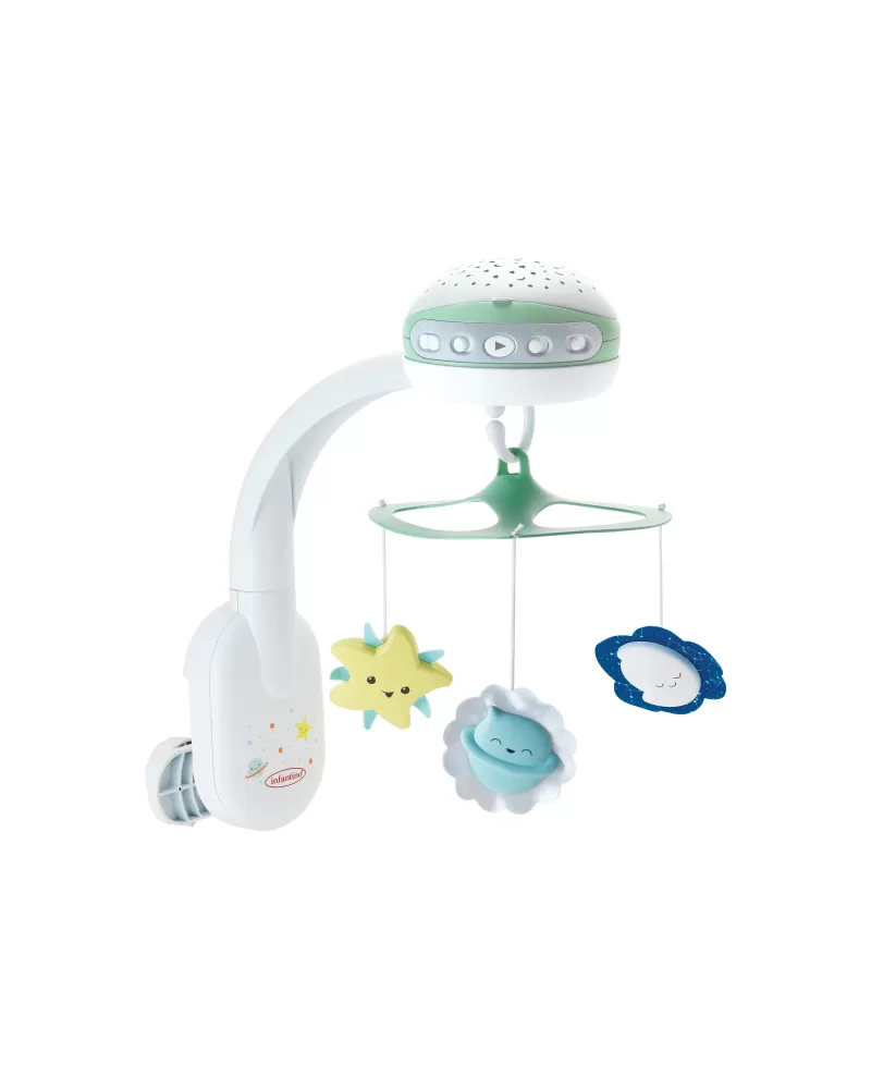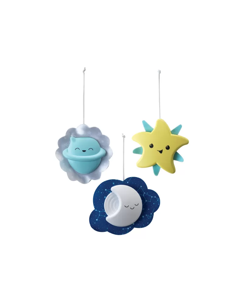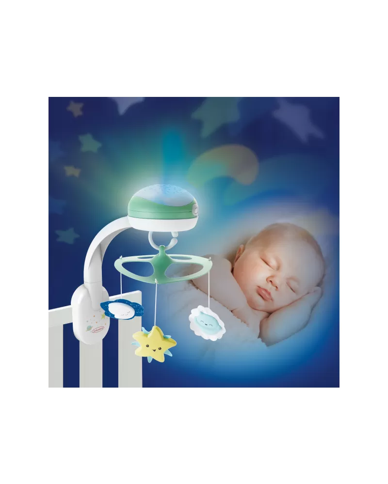 Světelný projektor promítá na stěnu či strop hvězdičky a jemně tak osvítí dětský pokoj. Spolu s uklidňující melodií pomůže vašemu dítěti v klidu usínat. Nabízí na výběr z osmi uklidňujících melodií a zvuků přírody. Melodie a přírodní zvuky kolotoč po zapnutí přehrává 20 minut, zvukový senzor přehrávání spustí znovu, pokud dítě během dvou hodin po zapnutí začne plakat.