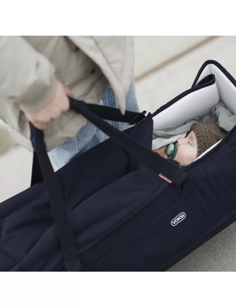 Voksi® Carry Me je prodyšná a měkká taška - postýlka, která poskytuje dítěti komfortní prostor a usnadňuje každodenní práci s miminkem. Poslouží miminku i jako uklidňující místo pro spánek, odpočinek a na hraní. Lůžko se se krásně vejde do většiny kočárků na trhu. Přenosné lůžko Voksi® Carry Me je všestranné a lze ho používat jak vevnitř, tak venku. Umožňuje plynulý přechod od usnutí venku k příjemným chvilkám doma, zajišťuje snadné přenášení a maximální pohodlí pro vaše dítě.
