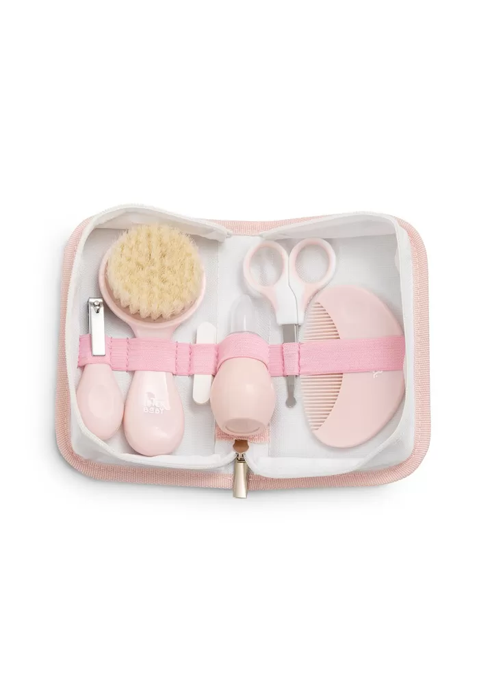 Sada obsahuje kartá s pírodními šttinami, heben se zaoblenými hroty, nky se zaoblenou špikou, nosní odsávaku s prunou a mkkou špikou, kleštiky a pilníek na nehty. Univerzální souprava je ideální na cesty i pro domácí pouití.
