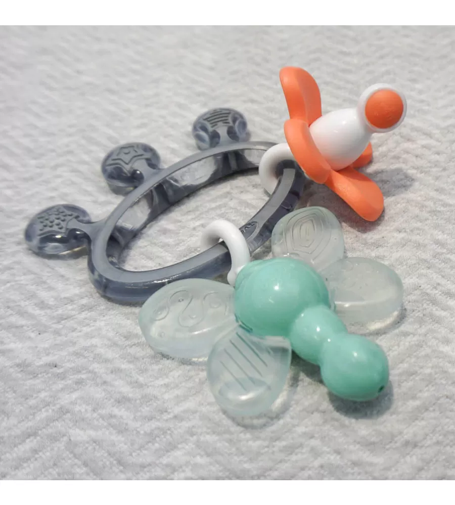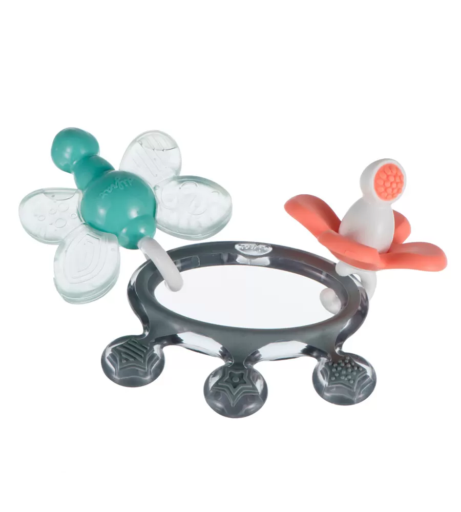 Kousátko ve tvaru koruny sestává ze tří části, které mohou být rozpojeny a použity každá zvlášť. Základem je šedý kroužek, který miminko snadno uchopí a který je vybaven kousacími výstupky. Ke kroužku jsou připojeny dvě barevné částí, které lze bez problémů oddělit. Těmito částmi jsou kytička a vážka - kytička podporuje péči o dětská ústa, zatímco vodou vyplněná vážka mění barvu v závislosti na teplotě. Je ji tedy možné zchladit, a tím ulevit miminku od bolesti. Kdy se ohřeje zpět na původní teplotu vidí rodiče na první pohled.