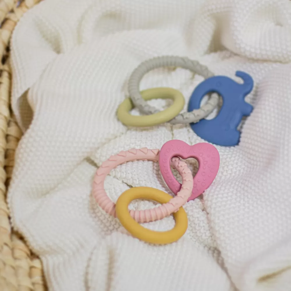 Silikonové kousátko ELEFI Měkké silikonové kousátko sestávající z kroužku se 3 zajímavými prvky je vyrobeno výhradně z potravinářského silikonu bez obsahu BPA. Nejkvalitnější odolné materiály zaručují bezpečnost vašeho děťátka během hry a prořezávání zoubků. Pružný silikon je dokonale vhodný pro citlivé dětské dásně. Pomáhá zmírnit bolest, která vzniká při prořezávání zoubků, neboť při kousání kousátka se jemně masírují dásně. Kousátko lze zchladit v chladničce a dát děťátku studené. Různé povrchy kousátka stimulují správný vývoj čelisti. Přiměřená velikost kousátka umožňuje děťátku snadné uchopení a vynikající, bezpečnou hru, která stimuluje jeho vývoj.