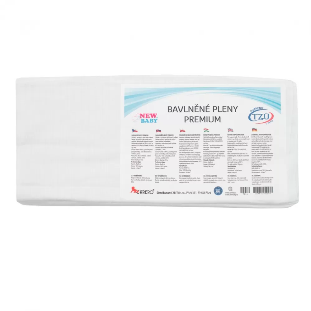Bavlněné dětské pleny PREMIUM. Pleny vysoké jakosti s nadstandardní gramáží. Balení 10 ks. Rozměr 80x80 cm, 100% bavlna, gramáž 150 g/m2. Pleny mají 2 okraje pevné a 2 zašité. Výrobek ověřen Textilním zkušebním ústavem, s.p., Brno. Nelze sušit v sušičce.
