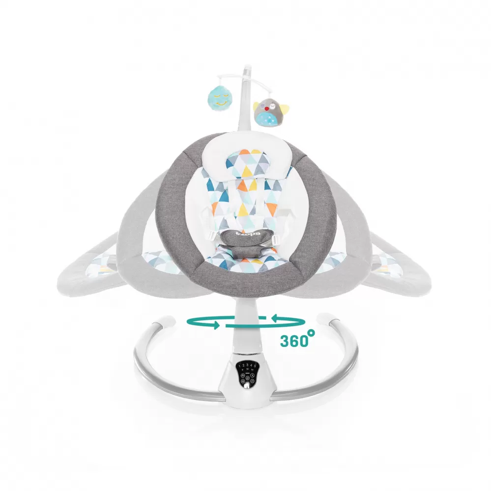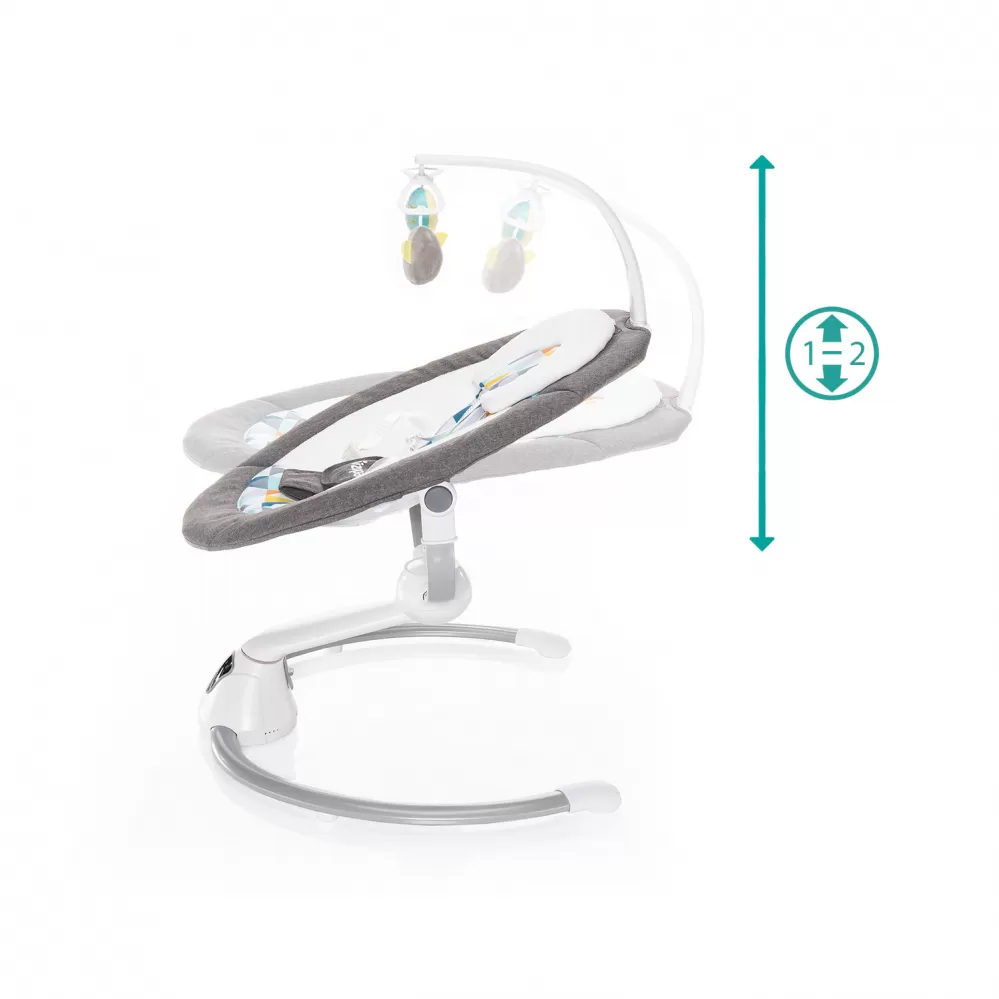 Unikátní konstrukce lehačky umožňuje otáčení o 360° a polohování sedátka do 2 poloh. Funkce houpání do stran připomíná pohyb kolébky, houpání dopředu/dozadu nahrazuje houpání v náručí. Lehačka disponuje 5 stupni intenzity houpání a automatickým zapnutím houpání při detekci pohybu dítěte. Samostatně lze také nastavit dobu houpání na 8, 15 či 30 minut.