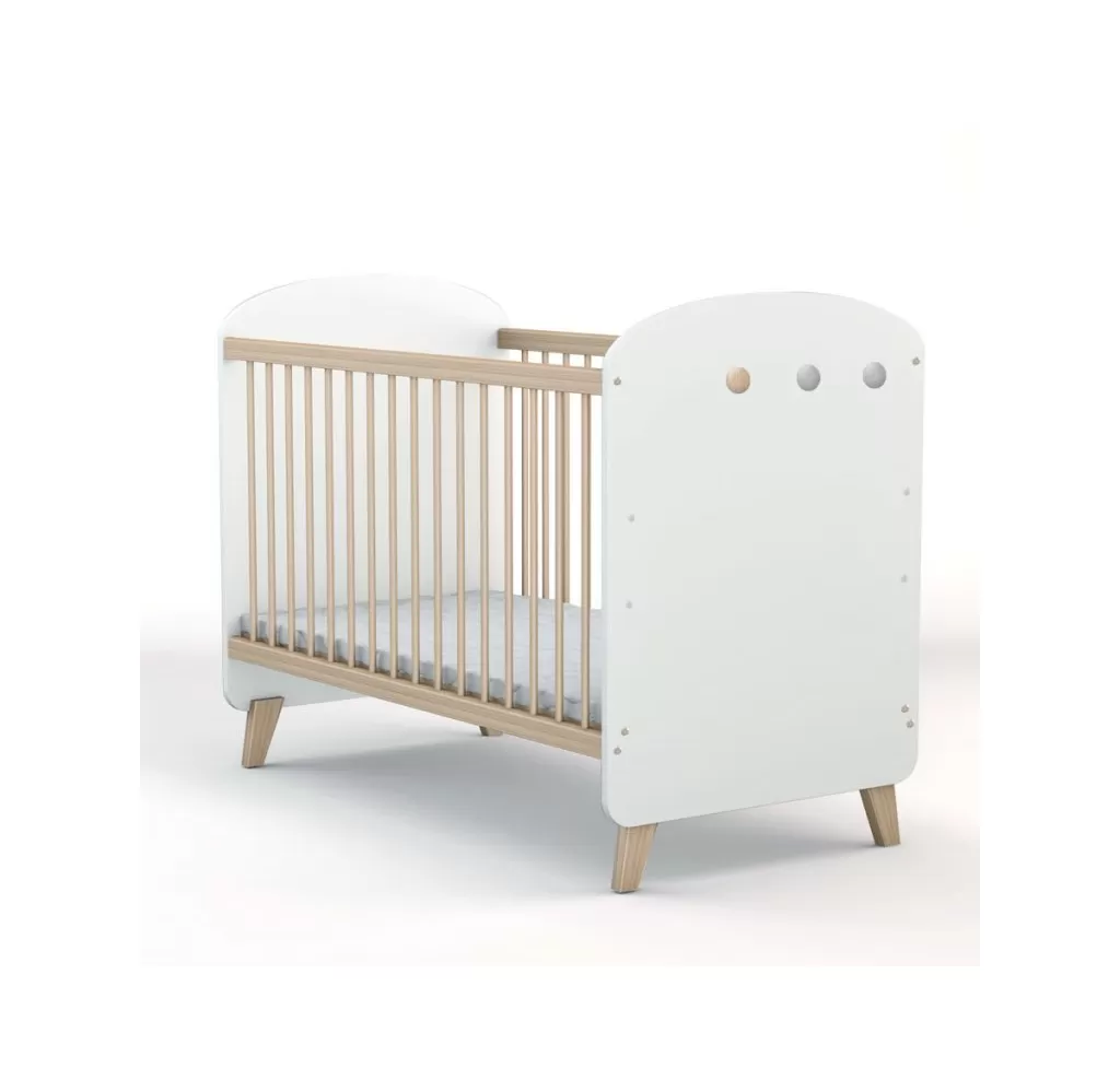 Dětskou postýlku Colette White s vnitřním rozměrem 60 x120 cm a výškově nastavitelným roštem.