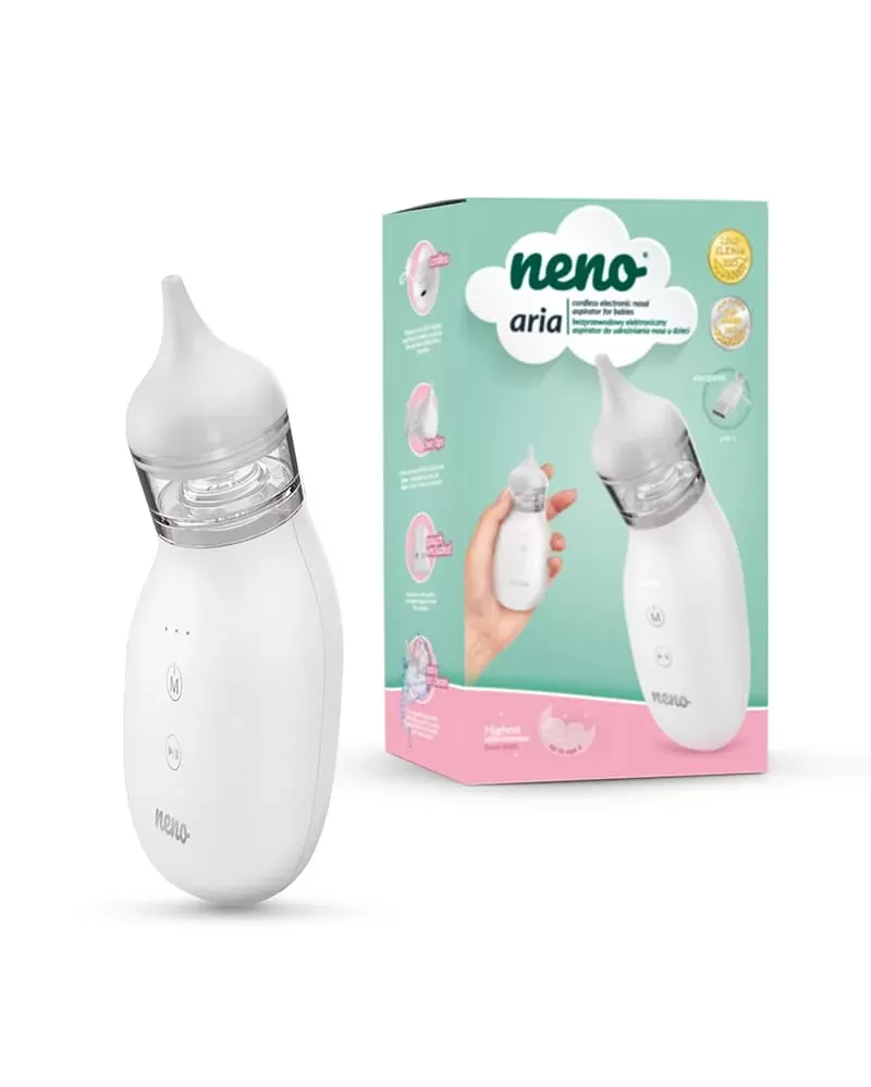 Neno Aria je moderní bezdrátová nosní odsávačka. Je lehká a snadno se používá, poskytuje jemné a zároveň přesné čištění dětského nosíku. Nastavitelný sací výkon a přiložené koncovky umožňují přizpůsobit sací výkon hustotě sekretů a věku děťátka.