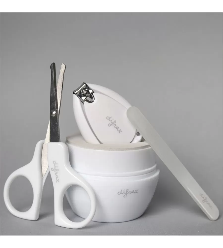 Manikúrní sada Difrax Baby Deluxe je speciálně navržena pro stříhání a péči o dětské nehty. Sada se skládá z nůžek se zaoblenými špičkami, štipek s extra úchopem a odolného pilníku z měkkého skla.