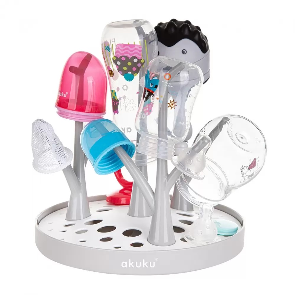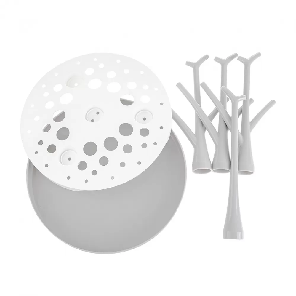 Sušička, odkapávač na láhve a příslušenství je ideálním pomocníkem na doma i na cestách. Speciální tvar spodní části byl navržen tak, aby odváděl vodu do jednoho místa a sušička nemusela být umístěna na dřezu. Je vhodná pro všechny typy lahví a dudlíků. Je snadno složitelná, čímž zabírá málo místa a lze jí mýt v myčce.