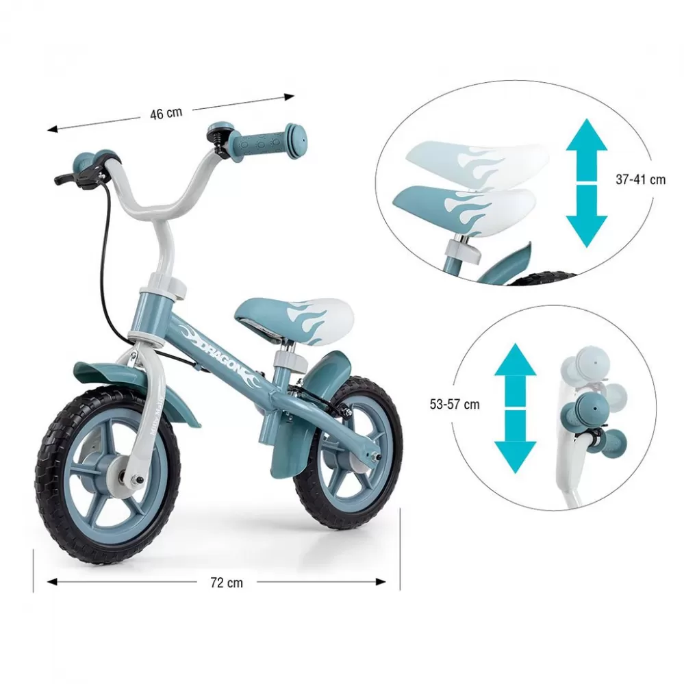 Milly Mally Dětské odrážedlo kolo Dragon s brzdou Denim