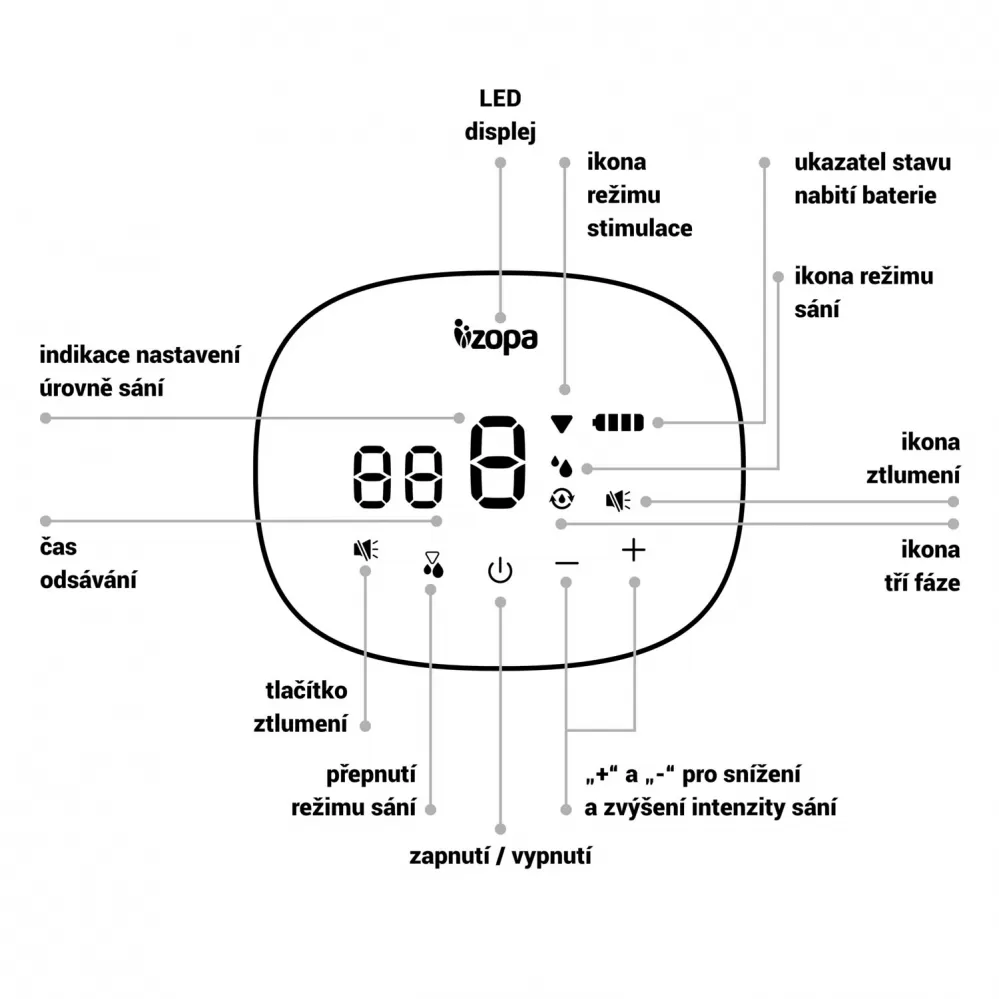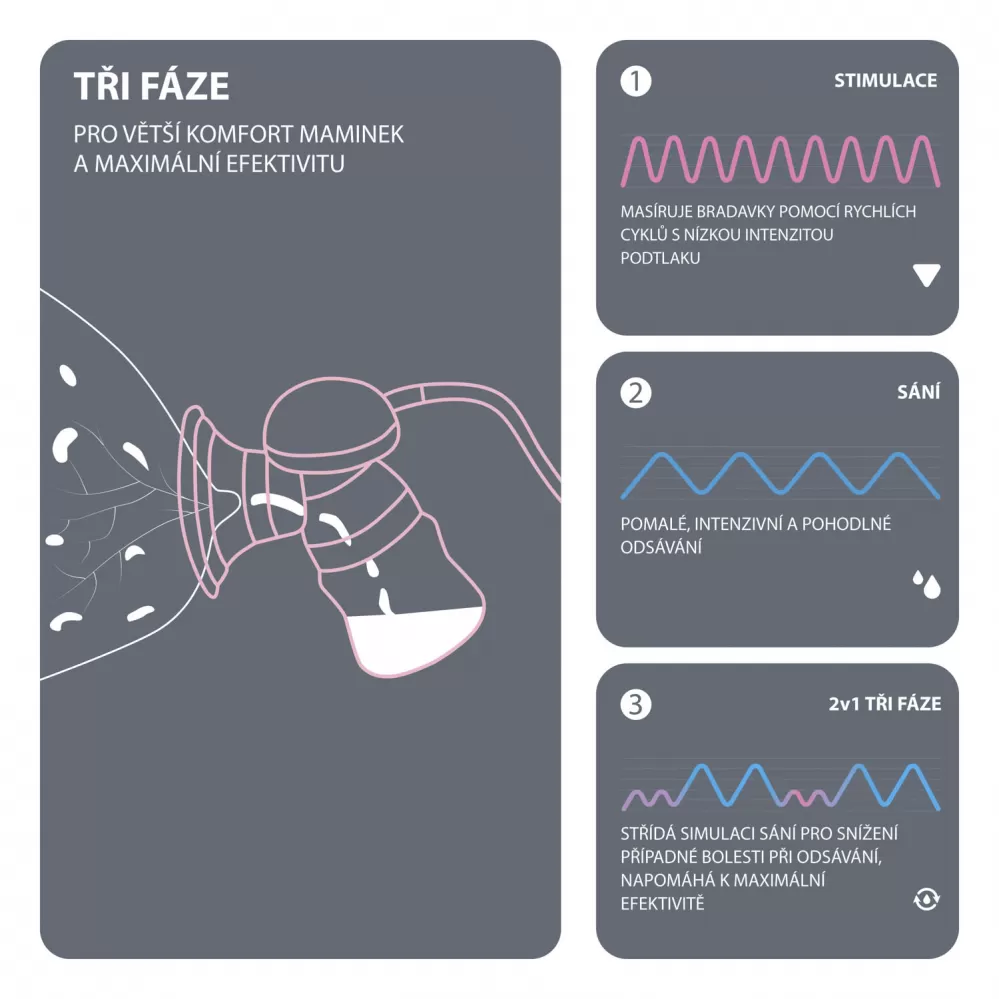 • 3 fáze – stimulace, sání, kombinace stimulace a sání pro dokonalé odsátí mateřského mléka