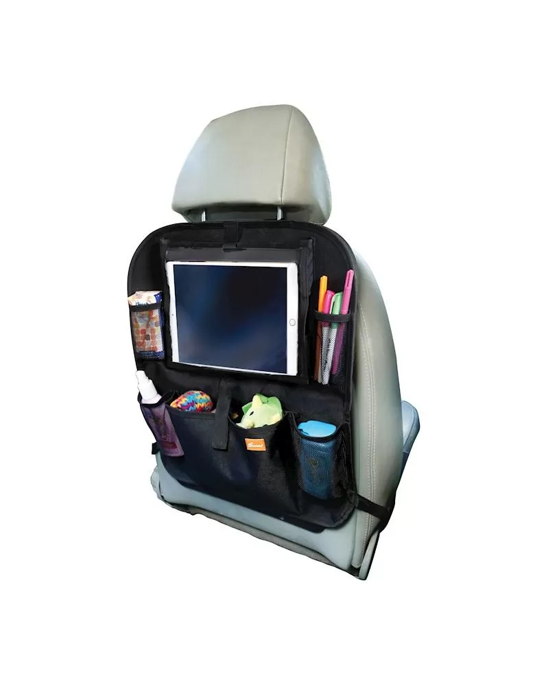 Tento organizér zadního sedadla je dokonalým místem pro uložení všeho potřebného pro cestu autem. Dodává se se 4 síťovanými kapsami a prostornou kapsou na hračky, která poskytuje dostatek prostoru pro uložení. Vejde se do něj i tablet, abyste mohli své dítě zabavit i na delších cestách. Mimořádně dlouhé snadno připevnitelné řemeny zajišťují, že se tento organizér vejde i na většinu opěrek automobilů. Vlastnosti: - Na cestách zajistí, aby byly nejmenší zaměstnání. - Ukládá vaše věci na jednom místě a udržuje tak vaše auto v pořádku. - Oblast obrazovky tabletu je vhodná pro 10,5-palcové obrazovky (26,7 cm). - Obsah materiálu: 90% polyester 600D, 10% PVC.