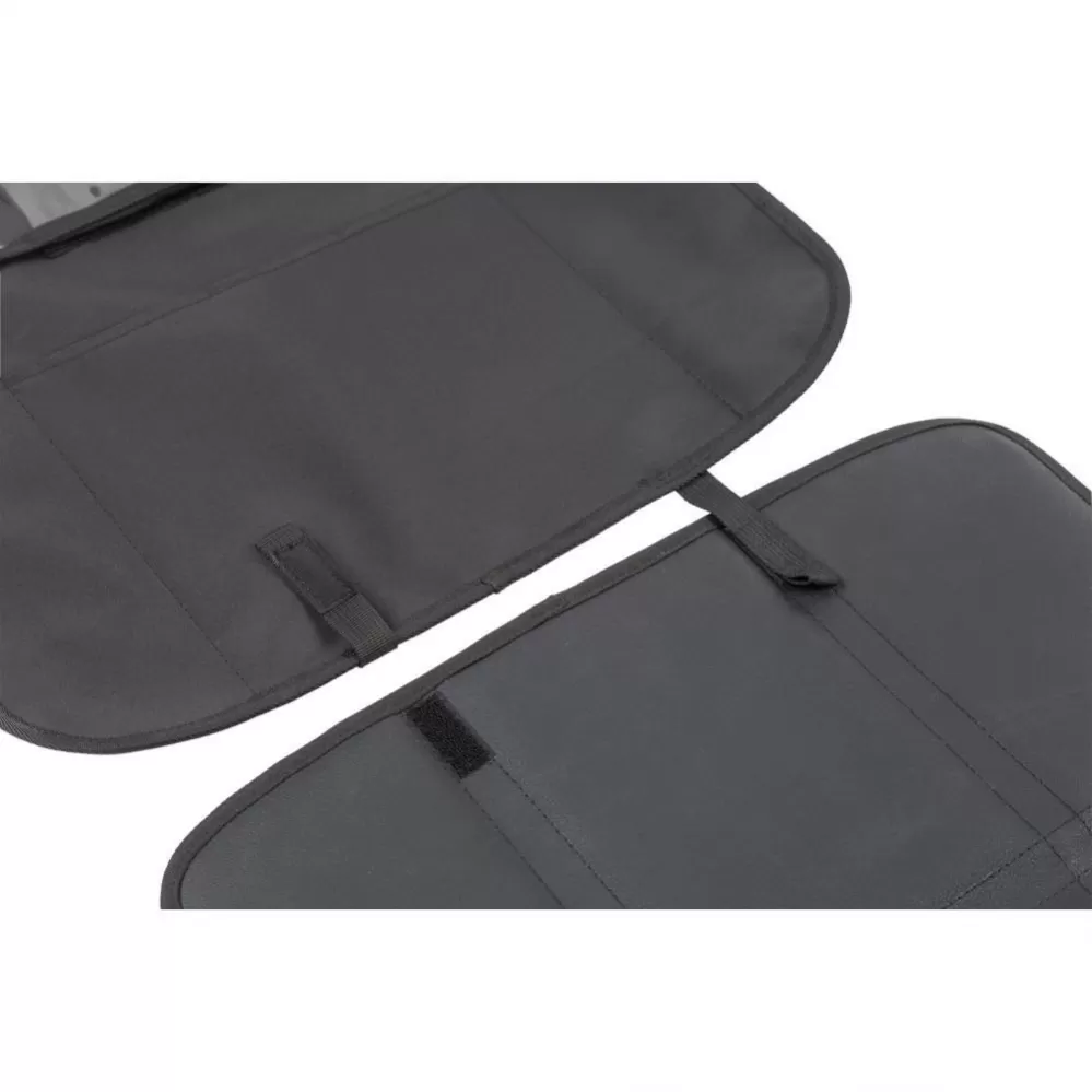 • horní část chrání zádovou opěrku před botami a zahrnuje držák na tablet pro zábavu během jízdy