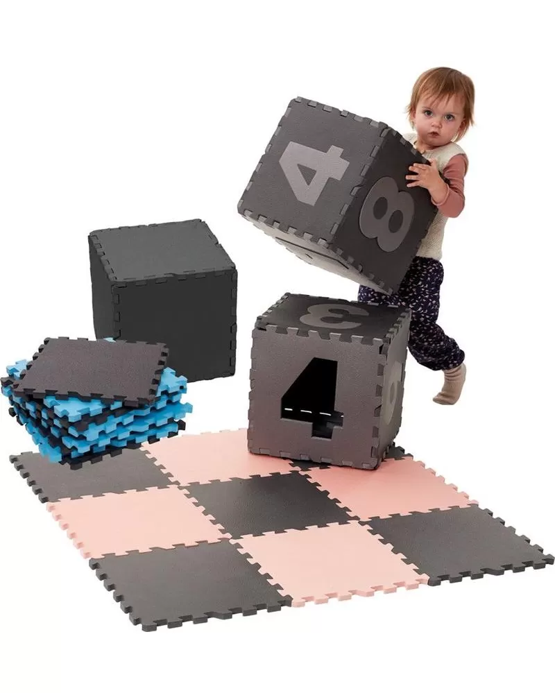 Pěnová podlaha je vyrobena z extra husté pěny tloušťky 1,4 cm, takže si na ní děti mohou hrát a bezpečně spadnout. Podložka izoluje plazící nebo batolící se dítě před chladem, hlukem a nárazem. Velmi vhodné přes dlažbu nebo plovoucí podlahu. Podložka může být alternativně sestavena také do čtvercové krabice. Pokud máte více podložek, můžete vytvořit další krabice, které dítěti mohou skládat. Spousta možností pro aktivní hru.