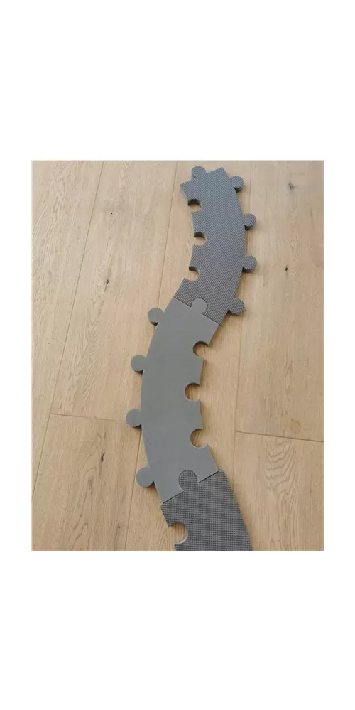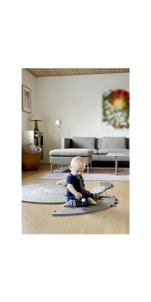Na první pohled vypadá tato pěnová podložka jako kulatá. Dá se však také rozložit a znovu sestavit na dlouhou dráhu s mnoha zatáčkami. Podložka je ideální jak pro hraní s auty, tak také pro procvičování rovnováhy chůze nebo jiné cvičení.