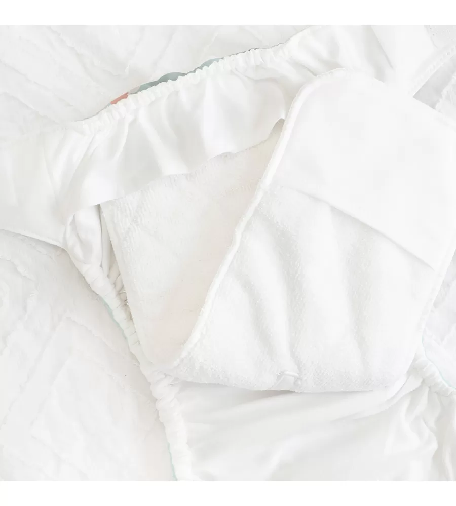 Praní v pračce na 60°C. Nepoužívejte chlorové čističe. Může se sušit v sušičce na nízkou teplotu. Nežehlit. Při praní musí být suché zipy vždy zapnuté, aby se zabránilo poškození plenek.