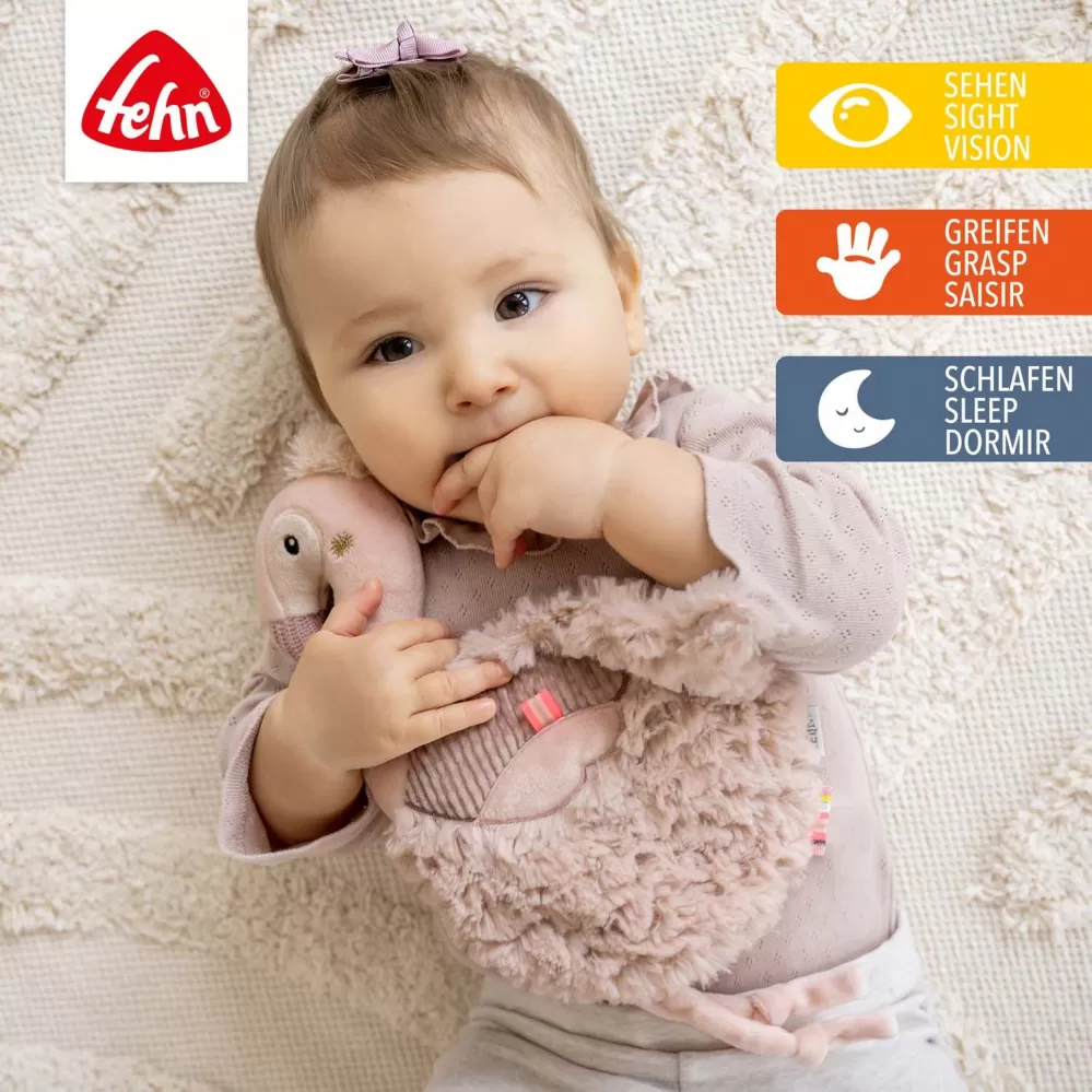 Okouzlující muchláček plameňák z kolekce Lazy, Crazy & Pink je usínací pomůcka, plyšový kamarád a mazlící dečka v jednom. Jako hebká hračka je věrným společníkem doma i na cestách. Jeho měkký, mazlivý tvar pomáhá dětem snadněji usnout. Přes den láká k uchopení, zkoumání a mazlení, večer pak poskytuje pocit bezpečí. Roztomilý plameňák se tak rychle stane součástí každého dobrodružství.