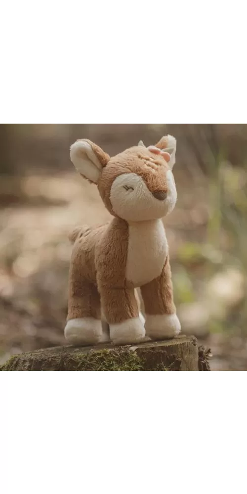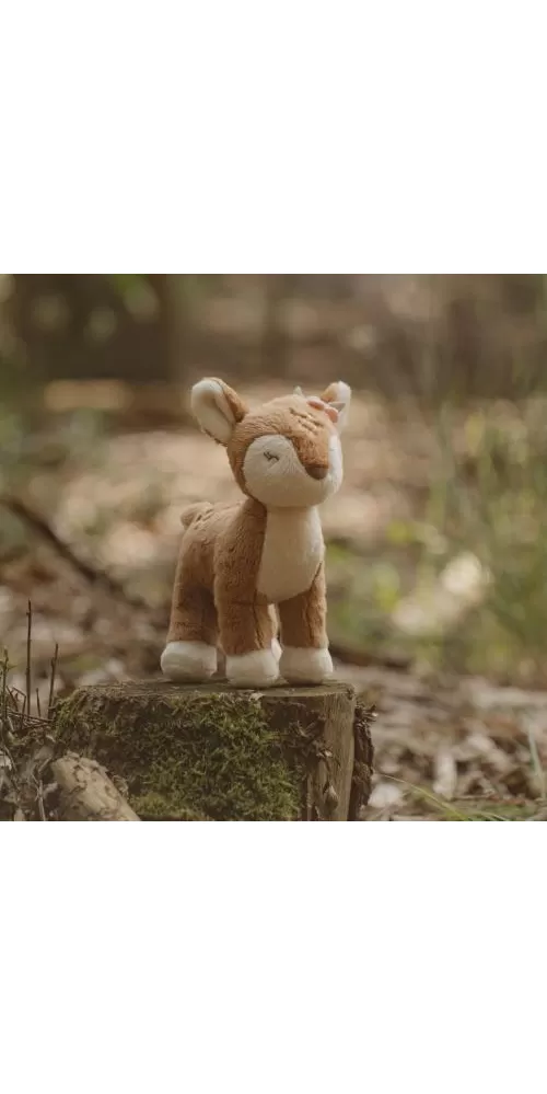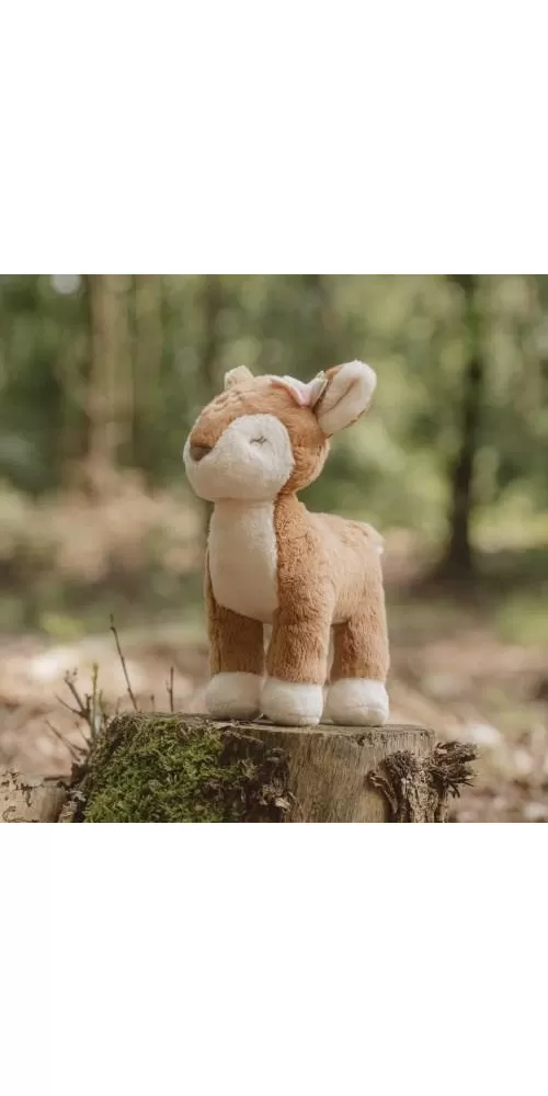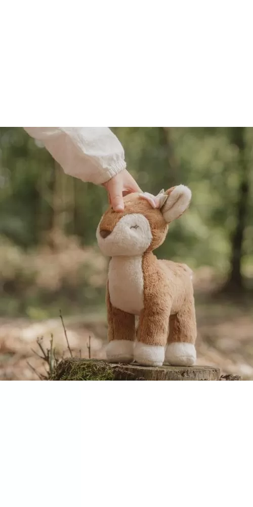 Jemná plyšová hračka v podobě něžné srnky je ideální jako mazlík do postýlky pro lepší usínání vašeho dítěte. Srnka umí samostatně stát a může tak sloužit i jako krásná dekorace v dětském pokojit.