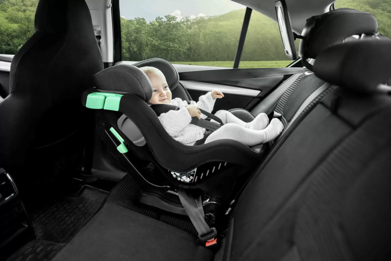 • Extra ležící poloha protisměru jízdy (úhel 150°) efektivně zmírňuje síly působící na dítě v případě nouzového brzdění nebo nárazu