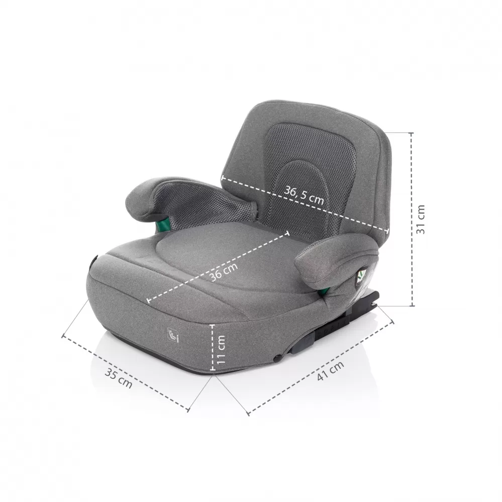 Bederní opěrka a opěrka na ruce se postarají o to, aby se dítě cítilo během cesty pohodlně. Celou autosedačku pokrývá měkké polstrování a potahy. Podsedák je určený pro děti od 125 centimetrů a lze ho používat až do 150 cm (12 let), dokdy je potřeba vozit dítě v autosedačce.